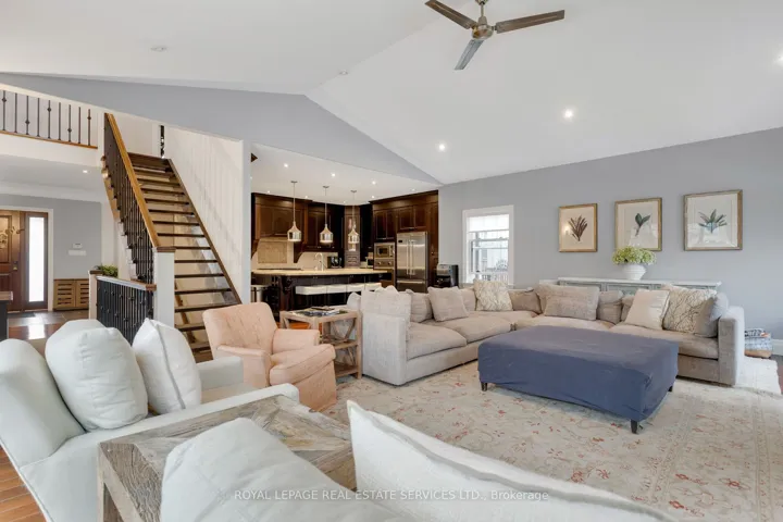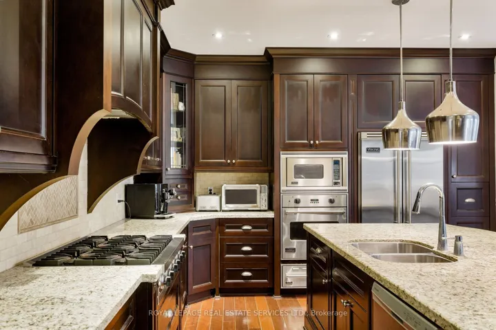 +"PublicRemarks": "Welcome to this exceptional upscale residence set on a sprawling 75 x 150 ft lot in prestigious Coronation Park. A 10-minute walk to Coronation Park on Lake Ontario and minutes to Bronte Harbour and Village, Oakville Harbour and downtown Oakville, for upscale shopping and restaurants. A 5-minute drive to the QEW and Bronte GO Station for commuters. Showcasing outstanding curb appeal with a stucco and stone façade, deluxe mouldings, professional landscaping, a stone walkway, covered flagstone porch and an extra-long driveway to a triple (tandem) garage, the home transitions seamlessly to a private backyard oasis-an entertainer's dream with upgraded stone patios, a custom saltwater pool with armour stone waterfall, lush gardens, multiple seating areas and ultimate privacy with mature trees. Offering 4 spacious bedrooms, 3.5 bathrooms and a professionally finished walk-up basement, the interior exudes refined craftsmanship with exotic hardwood floors, smooth ceilings, rounded drywall corners, crown mouldings, custom cabinetry, an impressive floating staircase, and abundant natural light. Highlights include a grand dining room, a dramatic family room with a cathedral ceiling, a gas fireplace and walkout, a private office, and a chef's kitchen with custom cabinetry, granite counters, an oversized island and premium Viking appliances. Upstairs features four generous bedrooms and two lavish bathrooms, including the primary retreat with a spa-inspired ensuite offering a jetted tub and a glass shower. The walk-up basement impresses with a large recreation room, a games room with a fireplace, a media lounge, and a 3-piece bath-perfect for family living and entertaining."