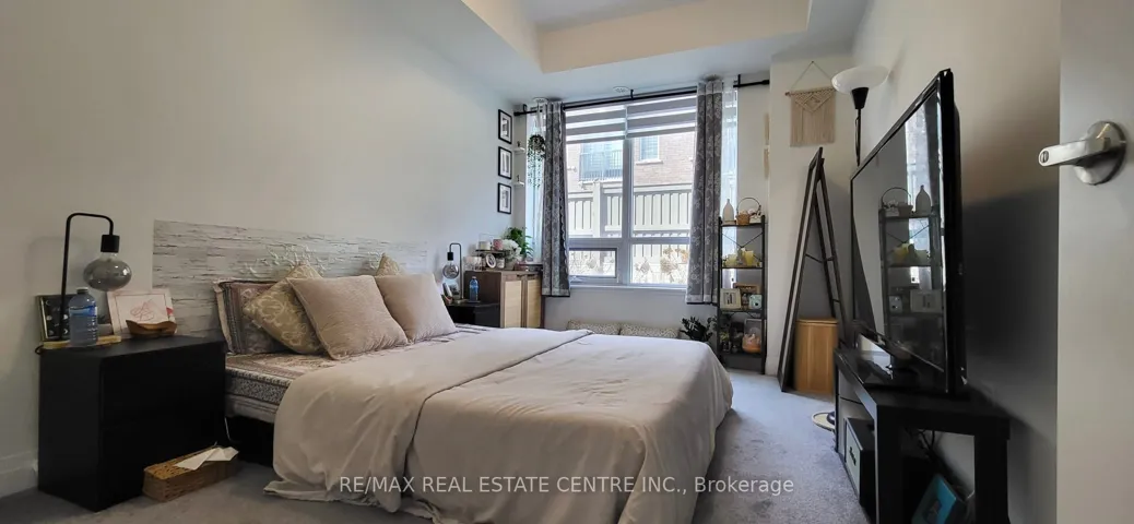 +"PublicRemarks": "This ground-floor unit offers a sophisticated living experience with 9' ceilings and premium finishes throughout. The modern kitchen and both bathrooms are elegantly appointed with quartz countertops, complementing the open-concept layout. The master suite serves as a private retreat, featuring a walk-in closet, a full ensuite, and a walk-out to a private patio. Residents will enjoy the convenience of 1 underground parking space and a secondary front patio off the main living area. Minutes from Highways 427, 407, and 7, with easy access to transit stops just a 3-minute walk away. Walking distance to grocery stores, pharmacies, and popular dining like Gurus Chilli Chinese. Located near the Gore Mandir."