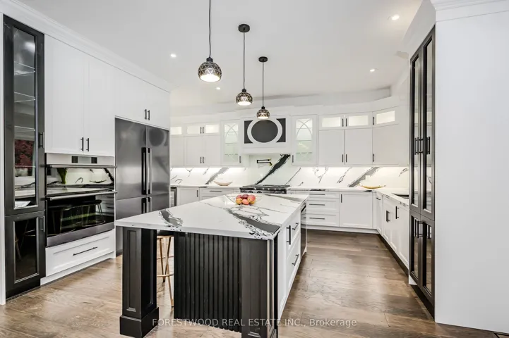 +"PublicRemarks": "Once in a lifetime opportunity to own a custom built residence with nearly 5,000sqft of luxuriously finished living, 5+2 BEDROOMS & 7-BATHROOMS perfectly situated on a private court in a prestigious neighborhood. The home features a grand stone and brick exterior that opens into an interior defined by timeless design and high-end finishes. The main level offers a sophisticated open-concept living and a formal dining area. At the heart of the home, the stunning modern kitchen with masterful carpentry is lavished with upscale appliances, a large center island, premium quartz countertops, and a matching backsplash. An adjacent breakfast room provides a seamless walk-out to an oversized patio, while the spacious family room offers a comfortable retreat anchored by a classic fireplace. This level also includes a private separate office for professional needs and a functional mudroom with a convenient side entrance. A spectacular staircase, illuminated by a soaring skylight, leads to the upper floor. The primary bedroom serves as a luxurious sanctuary, featuring coffered ceilings, a stunning fireplace, and a walk-out to a private balcony. Its spa-like five-piece ensuite bathroom is finished with heated floors and designer tiles. A massive walk-in closet complete with custom organizers and a second skylight. Every additional bedroom on this level is designed with privacy in mind, as each includes its own dedicated ensuite bathroom. Each Of The Additional Four Bedrooms Have Private Ensuite Bathrooms With Three Walk-In Closets And One Large Closet. A generous laundry room finishes the upper level. The expansive lower level further enhances the living space with a large open-concept great room that features a fireplace and a walk-out to a private patio and backyard oasis. A custom bar and a secondary kitchen, a full bathroom, and the sixth and seventh bedrooms complete the lower level. This is a rare opportunity to own a masterfully crafted residence!"