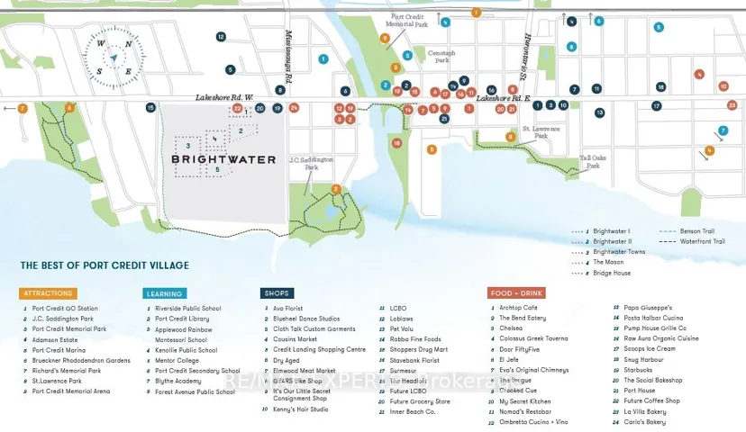 +"PublicRemarks": "Welcome to Brightwater at Port Credit! This brand new, sought after, ground floor corner unit 3 bed + den 3 bath condo townhouse features spectacular views of Lake Ontario from both the large patioand walk out balcony. The patio has natural gas for BBQ, and accesses the modern, open concept main floor, which features a fresh look with floor to ceiling windows, built in appliances, an island with quartz countertop, and ample space for entertaining friends and family. on the second floor, the wide balcony is accessible from not one, but two of the bedrooms, letting in an abundance of natural light. Building amenities include a gym, party room, office area, and patio space. Port Credit boasts tons of amazing restaurants, the marina, parks, grocery stores, libraries, community centers, shops, schools, and the Port Credit Go Station, with access made even easier through the designated Brightwater Shuttle Services, which often run every half hour. Don't let this opportunity pass you by!"
