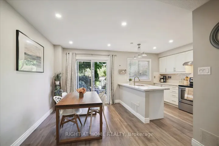 +"PublicRemarks": "Step into timeless sophistication at this impeccably maintained freehold townhouse, tucked away in one of South East Burlington's most desirable enclaves within the sought-after Nelson and Pauline Johnson School Districts. Renovated with designer-inspired craftsmanship and meticulously cared for, this residence exudes warmth, style, and everyday comfort.The main level showcases a seamless flow of bright, connected living spaces, enhanced by wide-plank flooring, pot lighting, and large windows that fill the home with natural light. A beautifully redesigned kitchen anchors the space with white shaker cabinetry, quartz countertops, stainless-steel appliances, a large island with breakfast seating, and elegant finishes that make cooking and entertaining effortless. A sliding patio door opens to a private, fully fenced stone patio bordered by mature trees - an inviting setting for morning coffee or relaxing evenings outdoors.Upstairs, the home offers three tranquil bedrooms, including a spacious primary retreat with a walk-in closet and spa-inspired ensuite. Each room is filled with light and calm, neutral décor, creating an atmosphere of quiet sophistication. The finished lower level adds versatility with a comfortable recreation area, laundry with washer & dryer, and ample storage. Perfectly positioned within walking distance to Appleby GO Station, close to parks, schools, shopping, and just minutes from Lakeshore Road, Burlington's waterfront, and major highways, this residence offers the ideal combination of style, convenience, and location. Elegant, inviting, and move-in ready - a Burlington gem not to be missed."