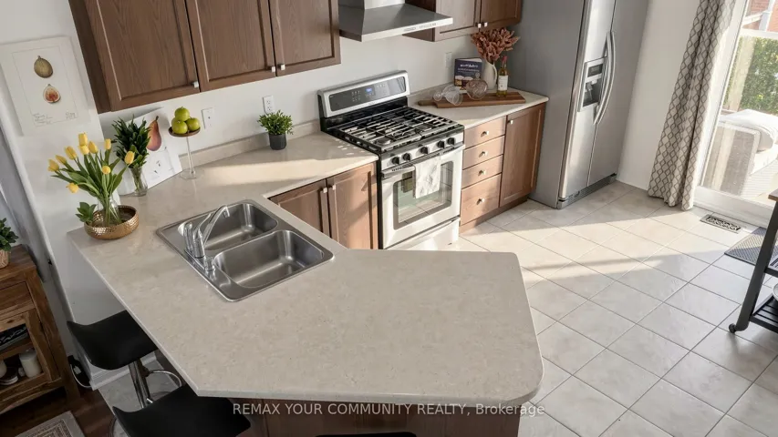 +"PublicRemarks": "Experience sophisticated urban living in this exquisite end-unit townhome in North York, Toronto. Nestled in a vibrant, centrally located neighborhood, this residence offers a serene retreat with quick access to public transit, Oakdale Golf & Country Club, the Humber River Hospital, and major highways like Hwy 400 and 401 for easy commuting to Vaughan and beyond. Step onto custom concrete-designed front steps and porch, welcoming you into an open-concept main floor featuring hardwood flooring, wood stairs with elegant spindles, and a chef's kitchen equipped with stainless steel appliances, a gas stove, bar-height countertops, and built-in speakers for seamless indoor-outdoor entertaining. Flow effortlessly to the spacious back deck, enhanced with an upgraded gas line for your gas BBQ and integrated speakers that enrich gatherings with music. A unique feature is the owner paid to have the Central air unit relocated from the back deck to the side of the home. As well as upgrading the exterior front gables from wood to vinyl and upgrading the single Primary bedroom closet into two separate closets. The lower level invites cozy relaxation with garage entry, a storage or cold room/pantry room, pot lights, and central vacuum. Garage is accessible through a back lane way & includes room for storage. Upstairs, two bedrooms share a full bathroom and versatile family room with natural light and built-in speakers, accompanied by a full-size washer and dryer. Ascend to the private third-floor primary suite boasting his-and-hers closets, a spacious ensuite with separate shower, soaker tub, and a charming makeup nook area. From the third floor step outside to your exclusive rooftop deck, an idyllic spot for peaceful mornings or evening views. This townhome blends comfort, style, and convenience for those seeking a refined Toronto lifestyle. Designed for those who want it all in the city."