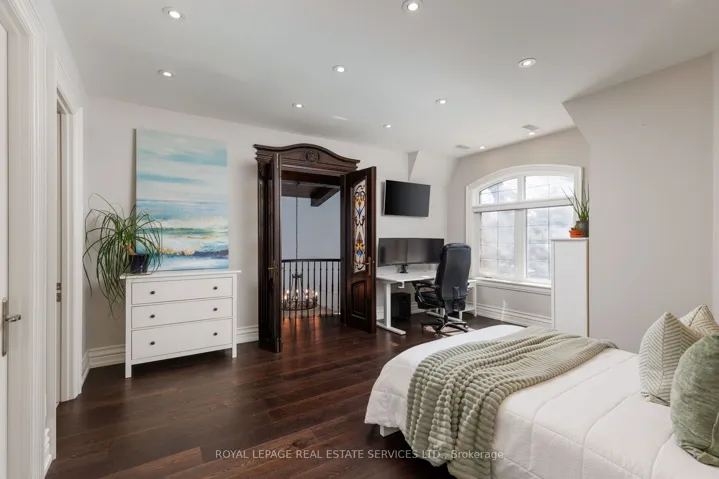 +"PublicRemarks": "Your castle awaits in Lorne Park, one of Mississauga's most prestigious lakeside communities, celebrated for its mature tree-lined streets, oversized lots, top-rated schools & seamless access to Toronto via the QEW & Clarkson GO. This extraordinary Medieval-inspired residence offers 4 bedrooms & 6 bathrooms, & an incredibly finished walk-up basement on a rare 79.25 x 274.83 ft lot, blending timeless Old-World architecture-steep rooflines, a striking stone turret, an arched entry & a stained-glass embellished entrance door-with modern luxury & functionality. The resort-style backyard is a private oasis featuring an in-ground saltwater pool with a new heater (2024), hot tub, mature trees, a covered stone terrace with a built-in natural gas BBQ, plus a custom hydro-equipped shed. Inside, artisan-crafted details abound, including stone feature walls, cathedral ceilings, wrought iron chandeliers, arched doorways & wide-plank engineered hardwood, complemented by modern comforts such as heated floors, 3 fireplaces, Sonos indoor/outdoor audio, custom Hunter Douglas blinds & extensive pot lighting. The main level impresses with a grand 2-storey living/dining room with a fireplace, a designer custom kitchen with premium Thermador & Gaggenau appliances, a breakfast room with a walkout, a family room with coffered ceilings & a fireplace, & a private office with custom cabinetry. Upstairs offers 4 spacious bedrooms, 3 elegant baths & a laundry room, while the walk-up lower level is designed for entertaining, along with wine tasting, fitness & spa/sauna spaces. The home offers a recently added hot tub, 3 upgraded electrical panels, upgraded alarm for heat detectors in garage, kitchen and mechanical room, & the garage has recently been fitted with a rough-in for a car charger & a rough-in for a future generator. Steps to a neighbourhood plaza, & minutes to Clarkson Village, parks & Lake Ontario, this one-of-a-kind estate delivers luxury, privacy & an unparalleled lifestyle."