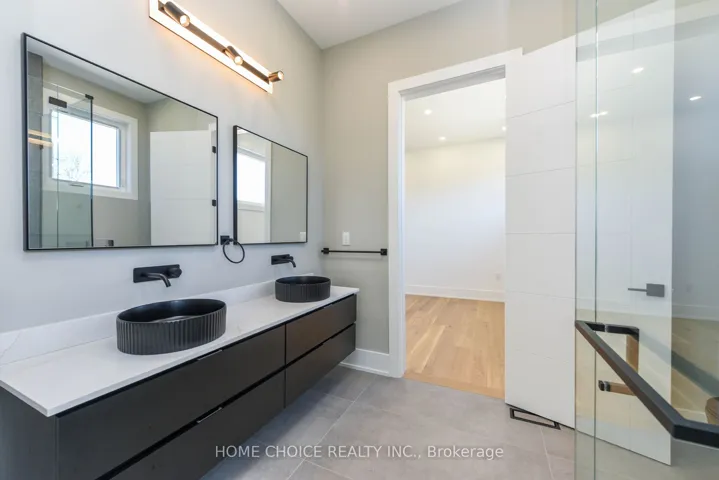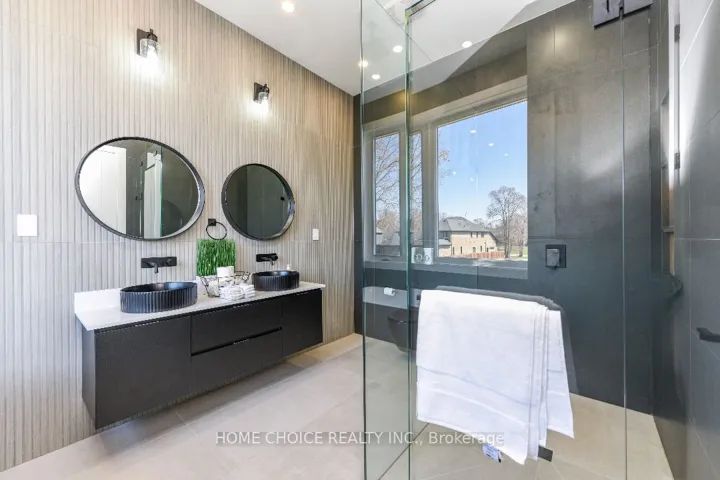 +"PublicRemarks": "This exceptional custom-built residence offers approximately 5,000 sq ft of refined living space, where craftsmanship and comfort meet seamlessly. Located in a top-rated school district directly across from Breckon Park, an interlocked driveway leads to an interior featuring hardwood flooring throughout, custom built-in woodwork, solid core doors, oversized basement windows, and striking glass wall details. The gourmet chef's kitchen showcases waterfall quartz countertops, two-tone cabinetry, upgraded premium hardware, and a secondary bar area ideal for entertaining. Premium finishes continue with floating staircases accented by LED lighting, quartz countertops, and multiple bathrooms with double vanities, floor-to-ceiling tile, curbless showers, and upgraded fixtures. Upstairs, the luxurious primary suite offers a custom spa-inspired ensuite with heated floors. Three additional bedrooms upstairs include one with a private ensuite and two sharing a Jack-and-Jill style ensuite-perfect for family or guests. The finished basement features a bedroom and full bathroom, glass-enclosed gym, private sauna, home theatre, and a spacious recreation room with fireplace. The home is further enhanced by 11' ceilings on the main level and 10' ceilings in the basement. Outdoor living is designed for year-round enjoyment with a covered porch, outdoor fireplace, and a fully equipped entertainment area including a built-in BBQ and outdoor kitchen. A rare opportunity to own a truly custom luxury home in an unbeatable location. Luxury Certified."