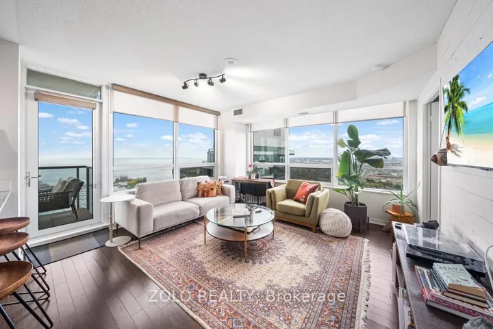 +"PublicRemarks": "Perched on the 38th floor, this stunning corner suite offers a front-row seat to sweeping, unobstructed lake and city views. Bright, open, and effortlessly elegant, the space is framed by two private balconies, including a serene walk-out from the primary bedroom.The second bedroom has been thoughtfully transformed with a custom-built office and a sleek retractable double Murphy bed (over $11,000), blending design and functionality in a way that actually makes sense.Refrigerator (2022)Washer & Dryer (2022)Laminate flooring in both bedrooms (2021)Warm hardwood floors run through the main living space, leading into a modern kitchen finished with stainless steel appliances and granite countertops.Residents enjoy access to premium amenities including a fully equipped gym, indoor pool, guest suites, and generous visitor parking.Ideally located just minutes from downtown with easy access to Mimico GO Station, this home offers that rare balance of calm waterfront living and city convenience. Current AAA tenant willing to stay or vacate."