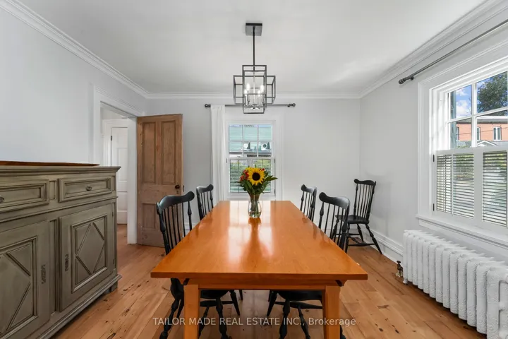 +"PublicRemarks": "Welcome to 19 Isabella Street; a stately and storybook home nestled in Brampton's cherished downtown heritage district. Originally built around 1854, this timeless residence has been lovingly restored and thoughtfully updated for modern living, offering the best of both worlds: historic character and contemporary comfort. The moment you step inside, you will feel the warmth that only a century home can offer. Wide pine-plank floors, high ceilings, and tall sunlit windows bring a sense of history, while the generous main-floor layout provides all the space and flow that today's families crave: a formal living and dining room with a beautiful decorative fireplace and mantle, a charming kitchen with breakfast nook, a main-floor Family Room/Office/Den, and a bright Sunroom overlooking the gardens. A full 3-piece bath and laundry/mudroom add everyday convenience without sacrificing charm. Upstairs, three comfortable bedrooms plus a versatile dressing room with custom wood cabinetry (formerly a 4th bedroom) offer flexibility for family, guests, or a home office. The lower level provides practical utility space. Outdoors, this home truly shines. The 53' x 153' corner lot is deceptively large, with a gently sloping yard, tiered flagstone patios, and mature trees that create privacy and shade providing a peaceful retreat in the heart of the city. The detached garage has electricity and provides space to keep a sheltered vehicle or use it as a hobby workshop . Even the family dogs have their own little piece of paradise with a spacious matching dog house that mirrors the main home, and there's plenty of room for canine zoomies across the lush, fenced yard. Here, heritage meets heart. Every detail tells a story and every corner feels like home. Flexible closing. Book your personal visit/tour today!"