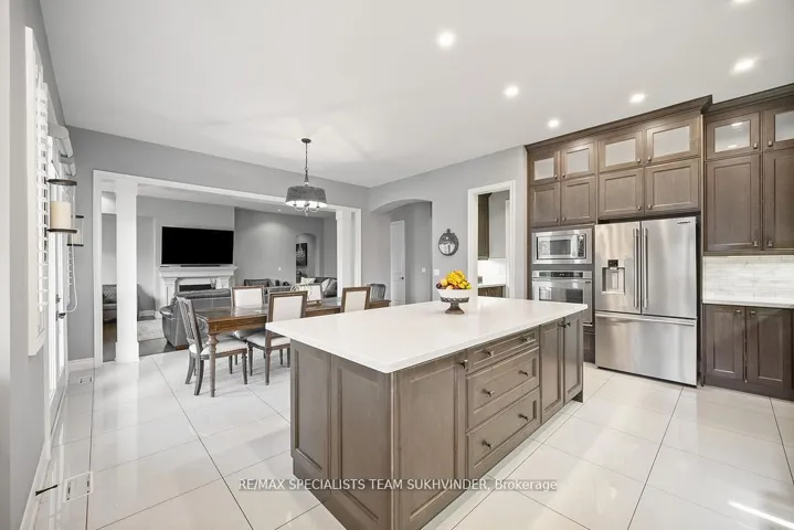 +"PublicRemarks": "Welcome to the epitome of luxury in the prestigious Pavilion Estates community! This absolute showstopper boasts over 5,100 sq. ft. of mesmerizing elegance, surrounded by grand homes and showcasing true craftsmanship at every turn. From the moment you arrive, you'll notice the interlocked driveway and 3-car tandem garage, perfectly complementing the home's stunning exterior and its prime location facing a beautiful pond. Step inside to 10-foot ceilings on the main floor and 9-foot ceilings upstairs, highlighted by an open-to-above foyer and a seamless, functional layout designed for modern living. The chef's kitchen features built-in appliances, quartz countertops, and flawless finishes that impress at every glance. Upstairs, discover 5 spacious bedrooms, with 4 full washrooms, and a second floor laundry adding convenience. The primary retreat includes a spa-like ensuite and a private balcony overlooking the tranquil ravine. The fully landscaped backyard and covered loggia provides the perfect space for entertaining or quiet evenings surrounded by nature. Located just steps from schools, parks, and public transit, this home truly delivers upgrades galore and an unmatched level of sophistication and comfort."