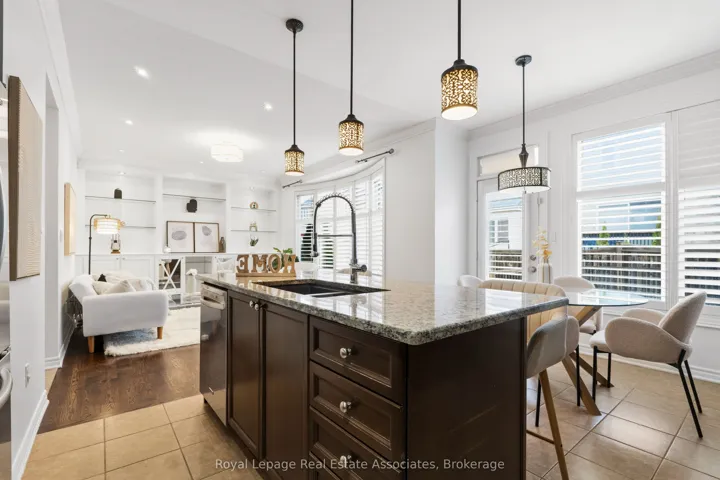 +"PublicRemarks": "Welcome to a beautifully upgraded, move-in ready family home with a grand double-door entry, tucked away on a quiet, family-friendly court in one of Milton's most sought-after communities. Thoughtfully designed for modern living, this 4-bedroom home offers a refined blend of style and functionality. Over $35K has been invested into the kitchen and family living areas, creating a seamless, high-end space. The main floor features 9-foot ceilings, crown moulding, and upgraded 8-foot doors, along with a welcoming foyer with mirrored closet. A formal dining room with hardwood floors and coffered ceiling is ideal for hosting, while the private office with glass French doors, 11-foot ceilings, and pot lights provides the perfect work-from-home setup. The living room is anchored by a custom built-in media wall, complemented by a curved oak staircase with a feature wall. The chef-inspired kitchen includes extended-height cabinetry, a built-in pantry, under-cabinet lighting, granite countertops, and a large island with breakfast bar, pendant lighting, and undermount sink. A bright dinette with garden door and transom window opens to the backyard. A stainless steel Kitchen Aid appliance package includes a counter-depth fridge, built-in dishwasher, induction cooktop with oven and baking drawer, and a low-profile microwave. The fully finished backyard features a deck, patio, and green space-perfect for entertaining and family enjoyment. Located minutes from Milton District Hospital and the Milton Sports Centre, with easy access to parks, schools, and amenities. A perfect blend of comfort, upgrades, and location-ideal for today's family lifestyle."
