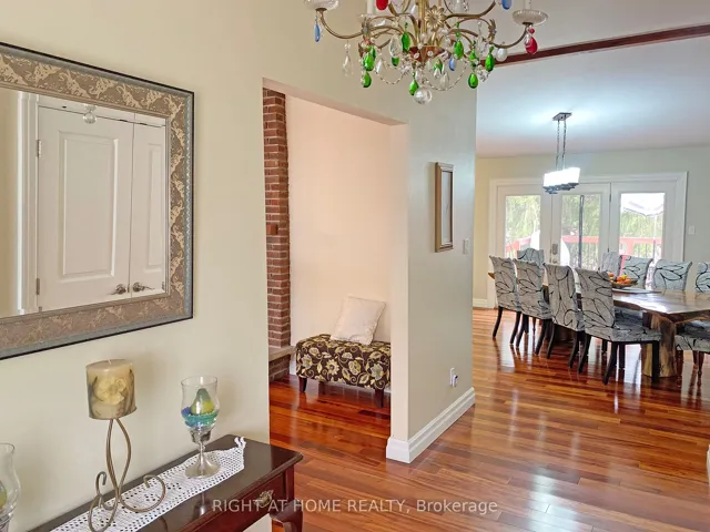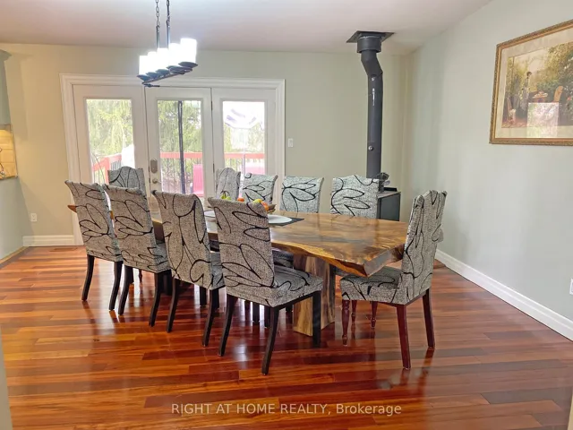 +"PublicRemarks": "This beautiful 3.7-acre property offers space, flexibility, and great potential for extended families or additional income. The main home is a spacious ranch-style bungalow, and there's also a separate apartment for added versatility. A standout feature is the large barn/workshop, complete with a full mezzanine-perfect for hobbies, storage, or keeping your recreational equipment. The property also includes a peaceful pond and plenty of parking for multiple vehicles. You'll enjoy the quiet feel of country living while still being conveniently located-just 30 minutes from Pearson Airport and only minutes from schools, gyms, and everyday amenities. If you enjoy the outdoors, you'll love the easy access to nearby trails, parks, and conservation areas. Inside the main home, you'll find a modern, updated kitchen, four bedrooms, and a spa-like bathroom with a sauna. The bright solarium is a great place to relax and take in the surrounding views. Additional features include hardwood floors, a two-sided fireplace, a wood stove, and plenty of charm throughout. The lower level is ideal for multigenerational living, offering a comfortable in-law suite with its own kitchen, a large great room with a wood-burning fireplace, and lots of storage space. In addition, there is a fully self-contained apartment with its own private separate entrance. It features a spacious great room with a walk-out, a kitchenet, and a bedroom with its own ensuite bathroom."