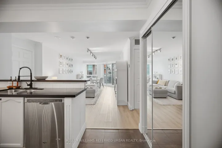 +"PublicRemarks": "This bright and spacious split two-bedroom, two-bathroom suite offers a thoughtfully designed floor plan in a boutique-style building. Recently updated, the unit showcases quality finishes including luxury vinyl plank flooring, ceramic tile, and a fresh, modern palette. The contemporary kitchen is both stylish and functional, featuring stone counters, a classic subway tile backsplash, two-tone cabinetry, full-size quality appliances, and an extended breakfast bar that seamlessly connects to the open-concept living and dining area. The generous primary bedroom serves as a private retreat, complete with a beautifully updated ensuite featuring a soaker tub, glass-enclosed tiled shower, modern vanity, and updated flooring, along with an expansive custom walk-in closet. Enjoy your morning coffee or unwind at the end of the day on the private balcony, with tranquil views of the sunrise over the lake. Ideally located just steps to the waterfront, Humber Bay, scenic walking and cycling trails, and Grand Avenue Park. Commuting is effortless with nearby transit options, including Mimico GO Station and Royal York Station, plus quick access to the Gardiner Expressway and Highway 427, connecting you easily to downtown Toronto and the airport. A fantastic opportunity to own a turnkey suite in one of Mimico's most desirable pockets."