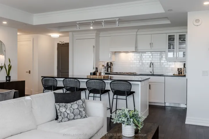 +"PublicRemarks": "Experience unparalleled luxury at Bridgewater Residences on the lake. This stunning 1,269SF unit boasts a flawless layout and breathtaking, unobstructed views of Lake Ontario, from Burlington to the Toronto skyline. Every detail speaks of quality, from the hardwood floors to the high-end Thermador built in kitchen appliances, including a 5-burner gas range set in granite countertops. Floor-to-ceiling windows flood the open-concept living and dining area with natural light, while offering access to a spacious balcony equipped for BBQs. Both bedrooms feature spectacular views and luxurious en-suites-the primary with a 5-piece set including a separate tub and glass shower, all complemented by marble and granite finishes with heated floors. The secondary bedroom enjoys ensuite privileges and also boasts heated floors. A generous corner den provides a flexible space, ideal for a home office or gym, equipped with built-in cabinetry, which can be easily converted into a 3rd bedroom. Included are central vacuum and a garbage disposal unit. Enjoy the building's exclusive amenities: indoor pool, rooftop courtyard, dual gyms, games and party rooms, and a lakefront deck. Benefit from 24-hour concierge, bike storage, valet visitor parking, and two EV-ready parking spaces, enhancing this premium living experience."