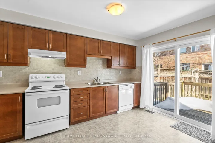 +"PublicRemarks": "Mattamy Brannan model offering nearly 1,400 sq ft of finished living space including a finished basement. Freehold home with no condo fees. Open concept main level with gas fireplace and kitchen backsplash. Three bedrooms and full bathroom on the upper level. Finished basement provides additional living space for family room, office, or gym. Private fenced backyard with wood deck and perennial gardens. Covered and recessed front porch. Well-loved home on a quiet, low-traffic street with walking trail at the end. Short walk to Metro, Fresh Co, Starbucks, Tim Hortons, Shoppers Drug Mart and dozens of restaurants. Elementary school approximately 8 minute walk away. Affordable entry into the Milton market."
