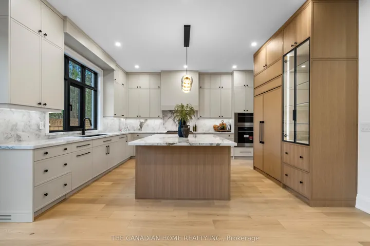 +"PublicRemarks": "Prepare to redefine your expectations of luxury living in Oakville.This detached home on a premium lot presents a level of design, craftsmanship, and contemporary elegance rarely available on the market. Thoughtfully custom built in 2025, offering over 5,000 sq.ft. of refined living space, the home features a striking stone & stucco exterior, sleek aluminum windows, modern metal/flat roofing, and a grand fluted double-door entry that sets the tone for what lies within. With 10-ft ceilings, engineered white oak flooring, curated designer lighting, LED-lit mono-stringer stairs, limewashed feature walls, and expansive windows, every detail reflects warmth and intentional design. The chef-inspired kitchen boasts natural marble countertops, Sub-Zero & Wolf appliances, dual-tone cabinetry, a dedicated coffee/pantry room, and a dramatic waterfall island-ideal for both entertaining and everyday indulgence. The family room's sculpted stone fireplace, built-in speakers, and full aluminum bifold doors create a seamless indoor-outdoor experience. Adjacent to the dining area, a stunning glass-enclosed wine cellar with an aluminum frame stands as a true architectural centerpiece, elevating every gathering. Upstairs, the second level continues with 10-ft ceilings and four generously sized bedrooms, each complete with its own ensuite. The primary retreat impresses with a double-door entry, his-and-her walk-in closets with LED-lit custom cabinetry, and a spa-like ensuite featuring marble finishes, a rain shower, porcelain slab walls, a heated towel rack, and a freestanding tub. The fully finished lower level with 9-ft ceilings enhances lifestyle living, offering a sauna, home theatre, fitness room, marble-clad wine bar, guest bedroom, luxury bath, and large above-grade windows. Ideally located minutes from Appleby College, St. Thomas Aquinas, W.H. Morden School, scenic trails, and boutique shopping, this home delivers an extraordinary blend of location, design, and elevated luxury."