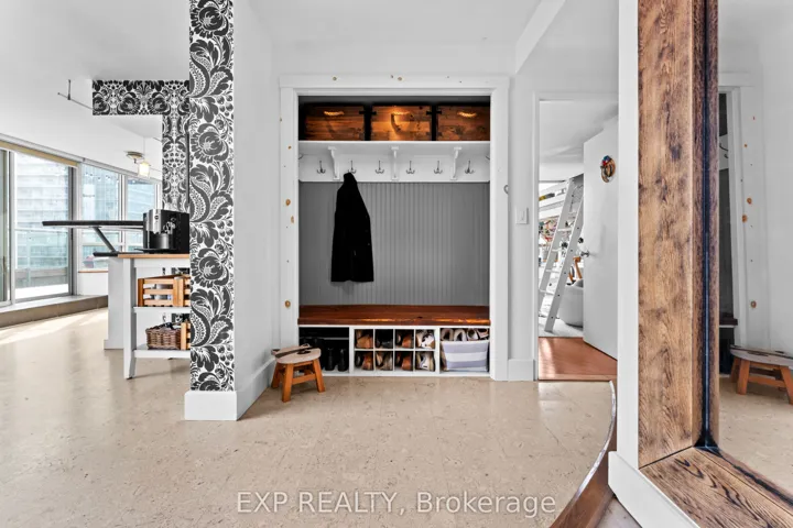 +"PublicRemarks": "A rare, architecturally distinct penthouse loft in the heart of Mimico, offering a level of scale and customization seldom found in condominium living. Originally designed by the developer as a combination of two suites, this one-of-a-kind residence spans almost 1,800 square feet and occupies a prime corner position with sweeping city skyline and water views. Defined by its dramatic 17.5-foot floor-to-ceiling windows, the home is filled with natural light throughout the day, creating an open, airy atmosphere that enhances both everyday living and entertaining. Two private balconies provide seamless indoor-outdoor flow and offer multiple vantage points to take in the surrounding landscape. The thoughtfully designed layout includes two bedrooms plus a den, balancing spaciousness with functionality. The primary suite features a large walk-in closet and a fully updated en-suite complete with a dual shower and double vanity. Clean lines and modern finishes carry throughout the space, complementing the loft's architectural character. Additional features include premium side-by-side two-car parking with a private locker directly attached, a rare and highly practical offering. A truly unique penthouse residence, combining scale, design, and livability in one exceptional home."