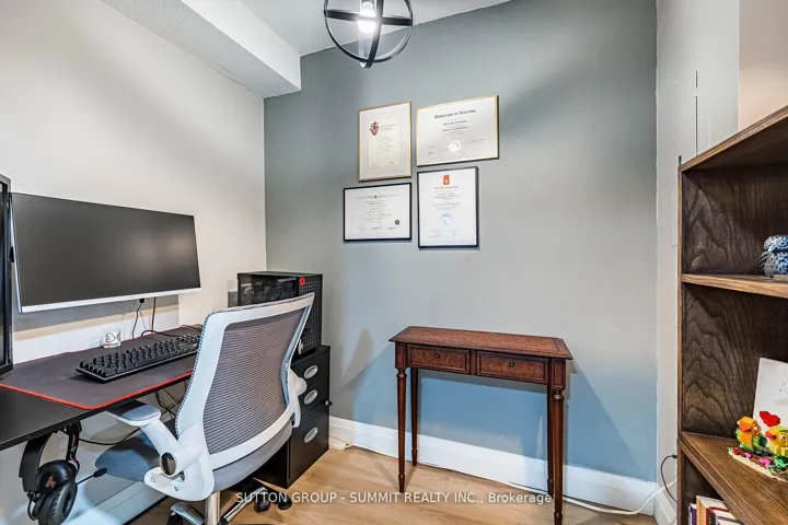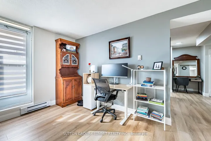 +"PublicRemarks": "Beautifully Renovated & Move-In Ready! Located in The Empress, one of Burlington's most sought-after condominium communities. This oversized 1-bedroom + den suite is the largestone-bedroom layout in the building, offering over 1,000 sq. ft. of bright, open living space with east and west exposures - perfect for enjoying both sunrise and sunset views. Completely renovated in 2023-2024, this suite features new flooring and baseboards throughout, freshly painted walls and ceilings, new doors, modern light fixtures, and ceiling fans. The custom kitchen shines with sleek cabinetry, extended counter space, and stainless steel appliances -ideal for cooking and entertaining. The updated bathroom offers a new tub, toilet, vanity, and elegant touch-light mirror for a spa-like feel. The bright living and dining area opens to a large private balcony, perfect for relaxing outdoors. The spacious bedroom includes two large double closets, while the versatile den is ideal for a home office. In-suite laundry and one underground parking space complete this exceptional home. Building Amenities include: 24-hour concierge, outdoor pool, fitness centre, sauna, party room, library, car wash bay, workshop, barbecues, EV charging station, and ample visitor parking. Enjoy comfort, security, and convenience just steps from shopping, dining, transit, and the Burlington Centre Mall."