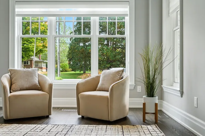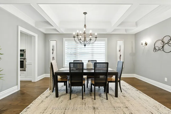 +"PublicRemarks": "Custom-built in 2016 by M. Butler Custom Homes, this exceptional residence offers approximately 5,000 square feet of luxurious living space, showcasing premium finishes and superior craftsmanship throughout. Situated on a 217-ft deep, pool-sized lot backing onto the RBG Hendrie Valley Sanctuary, this home blends elegance with natural serenity. The gourmet kitchen features a large island with dual-sided cabinetry, sink and pendant lighting, along with built-in stainless steel appliances including a wall oven, gas cooktop, fridge and dishwasher plus a sunlit eat-in area overlooking the private backyard. Rich hardwood flooring spans the main and second levels, complemented by hardwood stairs, coffered ceilings, crown moulding and pot lights that add warmth and architectural detail. The private primary suite includes a luxurious spa-like ensuite and two walk-in closets with custom built-ins. A finished walk-out lower level adds flexible living space, offering a fifth bedroom, full bathroom, rec room and multi-use area perfect for an office, gym, craft room or playroom. An upper-level balcony off the great room extends the living space outdoors and features a gas BBQ hook-up. Additional highlights include oversized windows, engineered hardwood, central vacuum and full home pre-wiring for automation and audio/video distribution. Ideally located minutes from Aldershot GO Station, Highways 403 and 407, as well as nearby restaurants and shopping. RSA. Luxury Certified."