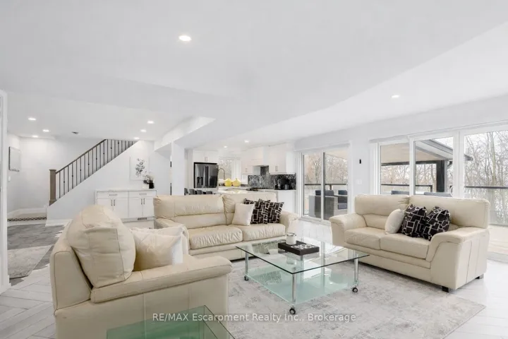 +"PublicRemarks": "Tucked at the end of a quiet cul-de-sac in Burlington's highly sought-after Aldershot community, this beautifully renovated (2019) home offers an exceptional lifestyle for families and downsizers alike. The sun-filled main floor features an open-concept layout, seamlessly connecting the spacious kitchen with centre island, living room, and formal dining area-all framed by stunning bay views. Floor-to-ceiling windows flood the space with natural light while showcasing picturesque vistas of Burlington Bay and surrounding greenspace. This level also includes a convenient main floor bedroom, laundry room, versatile office, and a stylish 3-piece bath. Upstairs, you'll find three generous bedrooms, including a serene primary retreat complete with a spa-inspired ensuite featuring a soaker tub and skylights. Ideal for multi-generational living, the fully finished lower level offers a secondary kitchen, comfortable living area, 3-piece bath, and a fifth bedroom-perfect for in-laws or a nanny suite-with a walk-up to the backyard. Step outside to a professionally landscaped oasis designed for entertaining, featuring a covered upper porch, spacious dining area, in-ground concrete pool, and a lower-level fire pit lounge. Conveniently located minutes from shopping, top-rated schools, highways, Aldershot GO Station, Royal Botanical Gardens, and golf courses. A rare opportunity to own a turnkey home that blends modern living with nature and tranquility."