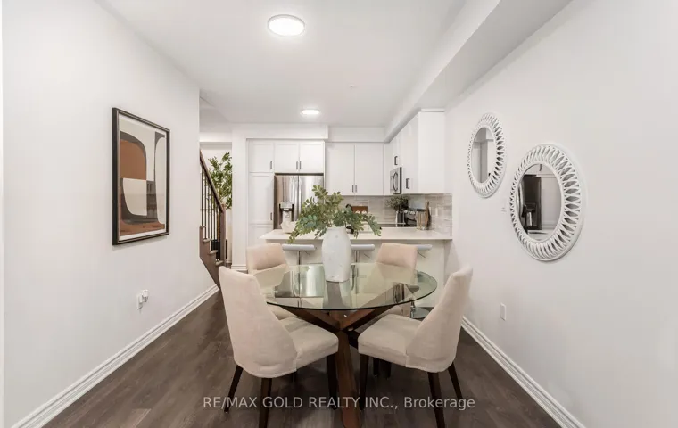 +"PublicRemarks": "Beautiful freehold townhome in Milton's highly sought-after Ford neighbourhood, built by Great Gulf. This bright, open-concept home features 9 ft ceilings and modern finishes throughout, creating a clean and airy feel from the moment you walk in.The stylish kitchen is equipped with stainless steel appliances and flows seamlessly into spacious living and dining areas-perfect for everyday living and entertaining.Offering 3 well-sized bedrooms, including a primary retreat with its own ensuite and private balcony access. Carpet-free throughout with 3 bathrooms and the added convenience of direct garage access.Ideally located close to top-rated schools, parks, scenic trails, transit, and Milton District Hospital. A perfect opportunity for families, first-time buyers, or investors looking for a move-in-ready home in a prime location."