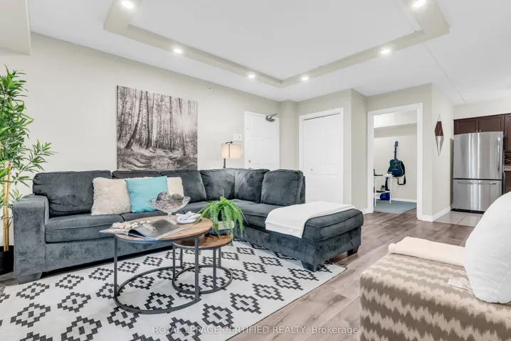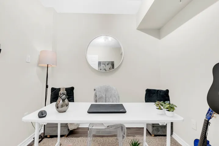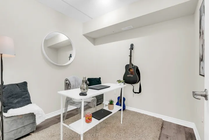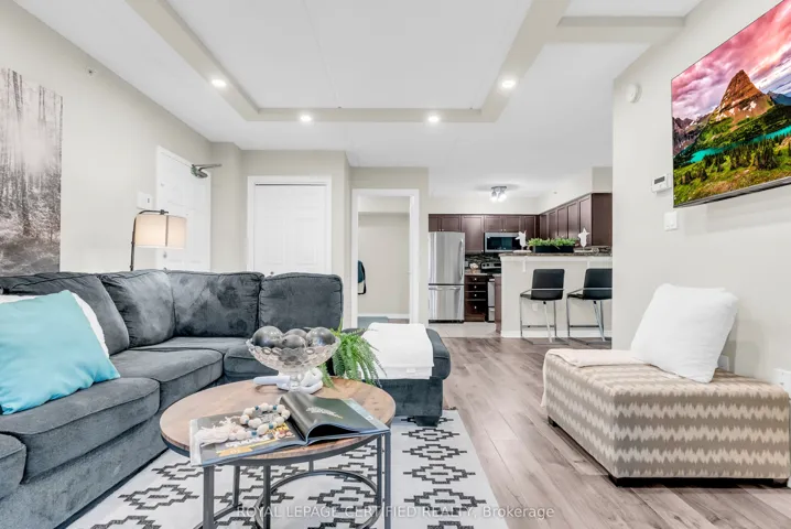 +"PublicRemarks": "Welcome to this move-in ready 1-bedroom + den condo in a highly convenient and welcoming community! Located in The Bristol on Main Condos, you'll be just steps from shopping, the First Ontario Arts Centre, community and leisure facilities, transit, major highways, parks, trails, conservation areas, and all essential amenities.This bright and inviting unit features an open-concept kitchen that flows seamlessly into a sun-filled living area, a spacious bedroom with a large window, a generously sized balcony with extra storage space, and a versatile den-perfect for a home office or quiet retreat. The 4-piece bathroom is conveniently located near the in-suite laundry. Enjoy Pot lights with sleek modern trim detailing in the living room and laminate flooring throughout the entire unit. Residents have access to excellent building amenities including a fitness room, party room, underground parking, car wash, and an exclusive locker/storage space. Additional parking can be purchased through the condo corporation.Whether you're looking for your next home or a smart investment, this condo is a great choice!"