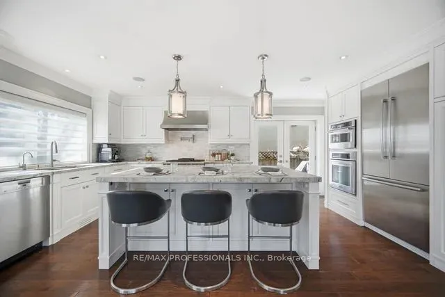 +"PublicRemarks": "Sophisticated living awaits in this beautifully renovated Kingsway residence. A classic stucco facade, vaulted ceilings and a Juliette balcony, framed by landscaped gardens, pool and mature trees. Light filled principal rooms are thoughtfully designed to balance elegance and everyday living. A main level fourth bedroom or office provides a quiet and versatile retreat. At the heart of the home, the chef's kitchen features quartzite countertops, an extensive centre island, premium Wolf, Kitchen Aid and Bosch appliances with a walkout to deck and private garden. Upstairs the primary suite is a true sanctuary with vaulted ceilings, spa like 5 pc ensuite and both a spacious walk in closet and additional double closet. Two additional bedrooms and a beautifully appointed family bath complete the upper level. The lower level extends the homes lifestyle appeal with a generous recreation area and walk out to the landscaped yard and pool - ideal for both relaxing and entertaining. A full size built-in garage adds everyday practicality to this elegant home. Ideally situated near top ranked schools, Bloor Street's shops and dining and some of Toronto's finest golf courses, with quick access to downtown and airports. An exceptional Kingsway home for those who value timeless style and effortless living."