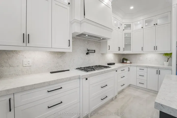 +"PublicRemarks": "Introducing 303 Delta Street - a newly constructed masterpiece in the desirable Alderwood community, just minutes from amenities, services, and transit. This exceptional home offers over 4,000 square feet of masterfully designed living space across three levels, showcasing premium finishes, modern functionality, and timeless craftsmanship. The bright, open-concept main floor features 10-foot ceilings and an inviting family room with coffered ceilings, a gas fireplace, stone accent wall, and floor-to-ceiling windows that fill the space with natural light. The gourmet kitchen boasts an oversized island, matching quartz countertops and backsplash, porcelain floors, double sink, and top-of-the-line Bosch and Liebherr built-in appliances. The main level also offers formal living and dining areas, perfect for entertaining. A tiered staircase with glass railing leads upstairs to four spacious bedrooms, three bathrooms, and a convenient laundry room. The primary suite features a tray ceiling, custom walk-in closet, and a spa-inspired ensuite with double vanity, freestanding tub, and rainfall shower. The upper level also includes a balcony and skylight, adding natural light and charm. Throughout the home, pot lights and a built-in speaker system enhance the modern atmosphere on all three levels. The finished lower level offers a large recreation room, gas fireplace, 3-piece bath, walk-up to the patio, and waterproof vinyl flooring. Located in the highly sought-after Alderwood community, this home is close to parks, sports facilities, community centres, public transit, Sherway Gardens, the Toronto Golf Club, Queensway Health Centre, and local shops and restaurants along Browns Line. Located under five minutes from the Gardiner Expressway and Highway 427, commuting is truly effortless. 303 Delta Street delivers the perfect combination of design, comfort, and location - a true gem in one of Toronto's most family-friendly neighbourhoods."