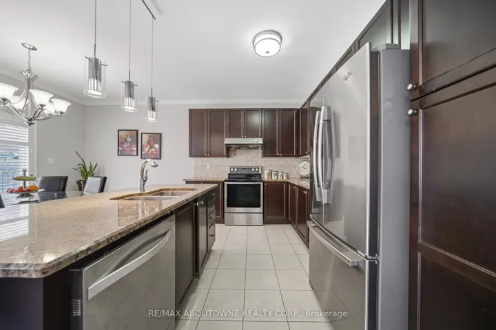 +"PublicRemarks": "Welcome to this stunning detached home in the desirable Coates neighbourhood of Milton. in Milton, offering a grand double-door entry and a warm, inviting foyer. Elegant wood stairs with iron spindles enhance the home's upscale feel, leading into a bright and spacious main floor. The living room features pot lights and gleaming hardwood floors, creating a perfect space to relax, while the separate dining area is ideal for entertaining family and guests. The family room boasts an electric fireplace, pot lights, and large windows that fill the space with natural light. The designer kitchen is both stylish and functional, complete with stainless steel appliances, modern countertops, and ample cabinetry for storage. The adjoining breakfast area is perfect for everyday meals or morning coffee and offers direct access to the backyard. Main floor laundry adds everyday convenience. Upstairs, you'll find a versatile office nook, ideal for working from home or study space. The spacious primary bedroom features a large ensuite with double sinks and a walk-in closet. Two additional well-sized bedrooms are complemented by two full bathrooms, offering comfort for the whole family. The finished basement adds valuable living space with new vinyl flooring, a generous rec room, an additional bedroom, closet, and a full bathroom-perfect for guests or extended family. Step outside to a huge fully fenced backyard featuring aggregate concrete, ideal for outdoor gatherings and family enjoyment. Additional highlights include a concrete driveway border and two exterior cameras included for added security and peace of mind."