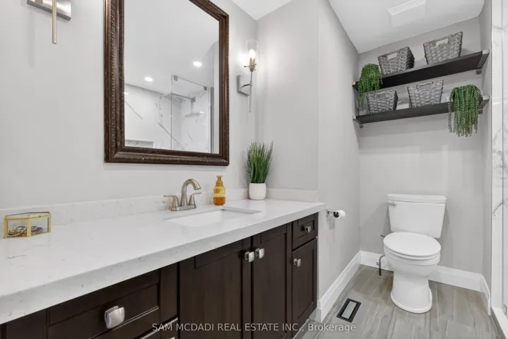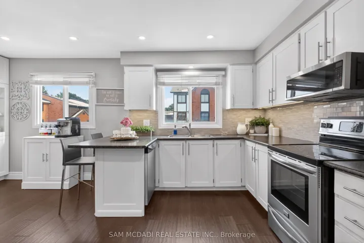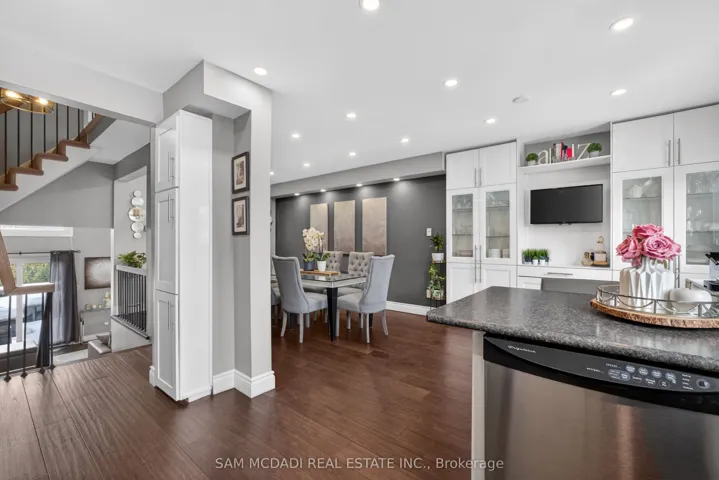 +"PublicRemarks": "Location! Location! Location! Welcome to the heart of Rockwood Village, bordering Etobicoke in the vibrant City of Mississauga. Nestled in a highly desirable and quiet family-friendly complex backing onto detached homes, this beautifully updated and meticulously maintained executive residence offers the perfect blend of space, style, and convenience. Boasting 1,540 sq. ft. of bright, open-concept living space, this 3-bedroom, 3-bathroom home impresses from the moment you step inside. The stunning living room features soaring 12-foot cathedral ceilings, dramatic floor-to-ceiling windows that flood the space with natural light, a cozy functional wood fireplace, and a walkout to a private, beautifully patio-ideal for entertaining or relaxing in your own serene retreat. The kitchen and dining level have been thoughtfully redesigned and renovated to remove interior walls, creating a seamless open-concept layout. The updated kitchen showcases SS appliances, ample cabinetry & storage, under mount lighting & stylish backsplash. Pot lights and rich hardwood flooring that flows beautifully through the space-perfect for everyday living and hosting family gatherings. All bathrooms throughout the home have been tastefully updated, offering modern finishes and comfort. The warm and inviting primary bedroom features a walk-in closet with closet organizer and a private ensuite. Two additional generously sized bedrooms offer spacious closets with organizers and sun-filled windows. The finished lower level adds valuable living space with a versatile recreation area and a dedicated laundry area-ideal for a growing family.Enjoy unparalleled convenience with walking distance to Longo's Plaza, schools, transit, parks, and scenic trails. Commuters will appreciate quick access to major highways including Highway's 401, 403, 427 & QEW. This exceptional home truly blends comfort, space, and an unbeatable location-perfect for families seeking a lifestyle of ease and convenience."