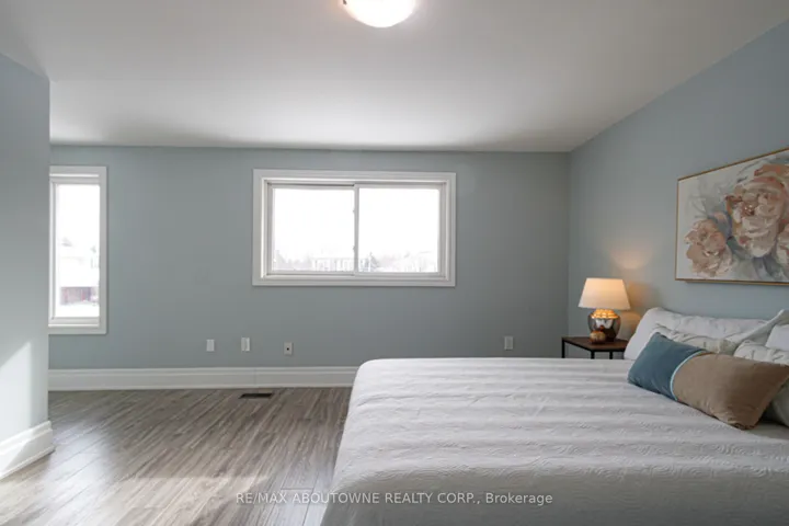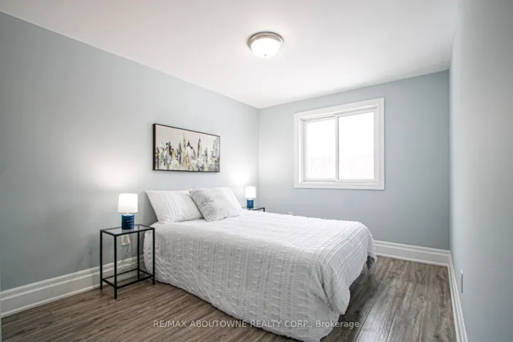 +"PublicRemarks": "READY FOR YOU TO MOVE IN! Completely Renovated from Top to Bottom! From the brand new garage door and front entry door to the stylish new flooring, this home has been thoughtfully upgraded throughout. Features include new laminate floors, new tiles, new baseboards, a new kitchen with modern backsplash and brand new appliances including integrated b/in dishwasher, plus freshly painted walls across the entire home.Enjoy the open-concept main floor layout - perfect for family living and entertaining. The spacious primary bedroom easily accommodates a king-size bed and still offers room for a home office or sitting area. The two additional bedrooms comfortably fit queen-size beds.The fully finished, renovated basement offers flexible space ready for your personal touch - ideal for a kids' playroom, media room, gym, or man cave.Parking is easy with a driveway that fits 2 cars. Maintenance fee INCLUDES WATER and ROOF!. Unbeatable Oakville location: walk to medical offices, shopping, and restaurants, and just minutes to QEW, 403, Sheridan College, and downtown Oakville."