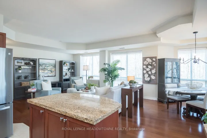 +"PublicRemarks": "Welcome to this stunning corner unit in the prestigious Woods End Condominiums, ideally located in the sought-after Hurontario neighbourhood of Mississauga. Offering approximately 1200 sq ft of thoughtfully designed living space, this bright and spacious 2-bedroom, 2-bathroom condo showcases beautiful views of the surrounding wooded greenspace. The modern eat-in kitchen features a breakfast bar island, stainless steel appliances, tile backsplash, ample counter space, and direct access to a large private balcony complete with a gas line for BBQs. The open-concept living and dining areas are enhanced with hardwood flooring, upgraded lighting, expansive windows, and a neutral colour palette throughout. The generously sized bedrooms include a primary retreat with a walk-in closet and 4-piece ensuite, along with cozy newly installed carpeting and a large main bath. Enjoy upscale building amenities such as concierge service, guest suites, a party room, and an exercise facility. Conveniently located just minutes from Square One Shopping Centre and the vibrant Heartland area, with easy access to transit, parks, golf, and recreation-this is condo living at its finest."