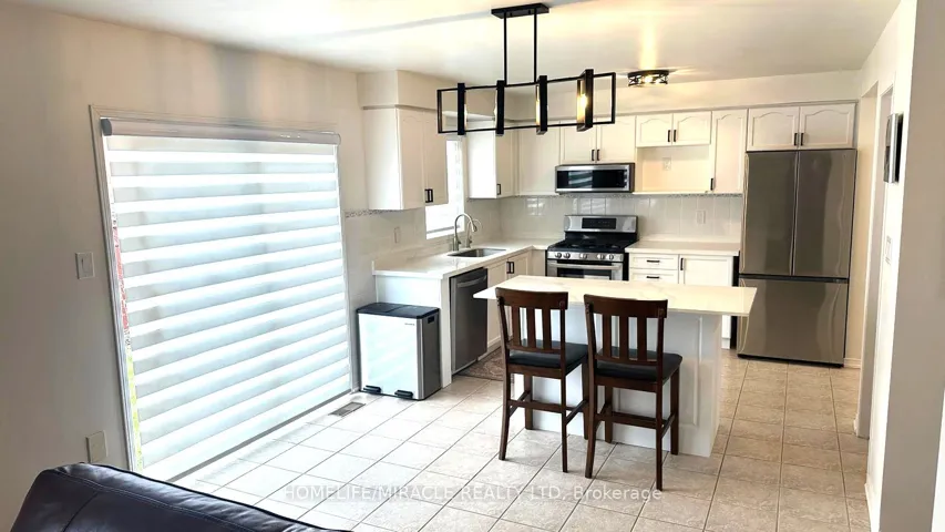 +"PublicRemarks": "Welcome to this beautifully renovated all-brick home featuring a double-car garage with EV charger and direct access to the main-floor laundry and powder room. The spacious eat-in kitchen offers quartz counters, a breakfast bar, stainless steel gas stove, OTR microwave, refrigerator, dishwasher, pantry, and coffee nook. The cozy living room includes a gas fireplace and views of the fenced backyard. New blinds throughout the home and contemporary double-closet doors in the generous dining room add a fresh, modern touch-perfect for hosting family and friends. The second floor offers five generous bedrooms, including a primary suite with a four-piece ensuite, soaker tub, and his-and-hers closets, plus an additional three-piece bath. A separate side entrance leads to a large, untouched basement ready for your personal design. Additional features include a tankless water system, furnace humidifier, central air, and a 2018 roof. Conveniently located near public transit, Mount Pleasant GO Station, schools, library, Fortinos Plaza, community center, and medical offices. Book your private showing today."