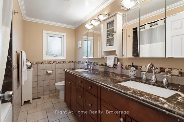 +"PublicRemarks": "Luxurious 5-bedroom 5-ensuite park-facing estate home tucked away on a quiet street in one of Oakville's most established family-friendly communities. $$$ spent on recent upgrades include a brand new kitchen with oversized & extended island, dual sink, high-end appliances, fresh painting and hardwood flooring throughout. Premium park-front and side-lane positioning offer exceptional privacy, abundant natural light, open views, and added convenience. Overlooking a tranquil neighbourhood park from both the main living areas and second-floor bedrooms, this impressive home offers approx. 3,710 sq. ft. above grade (MPAC) with a beautiful open-concept layout and direct garage access, ideal for elegant entertaining and multigenerational living. Featuring 10-ft ceilings on the main floor and 9-ft ceilings on the second floor and basement, the home feels bright, airy, and spacious throughout. Rare-find main-floor bedroom/office suite with upgraded ensuite bath, perfect for guests, in-laws, or elderly parents. The stunning chef's kitchen features an oversized quartz island w/built-in breakfast table, stylish backsplash, ample storage and brand-new appliances, while the sun-filled breakfast area opens to the south-west facing backyard. Upstairs, all 4 generously sized bedrooms have their own private ensuite baths and walk-in closets, including a luxurious primary retreat with 2 large walk-in closets and spa-like ensuite featuring LED mirrors. Second-floor laundry also adds everyday convenience. Additional features include 200-amp service, stately oak staircase, ample pot lights, custom zebra blinds, HRV fresh-air system, larger basement windows, and excellent street parking along the park, ideal for large gatherings. Perfectly positioned right at Trafalgar & Dundas, close to Oakville Trafalgar Memorial Hospital, top schools, scenic trails, shopping, Walmart Supercenter & Longos, quick access to Highways 403, 407, QEW, 401 & Go Train Stations, a commuter's dream! Do Not Miss!"