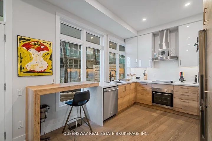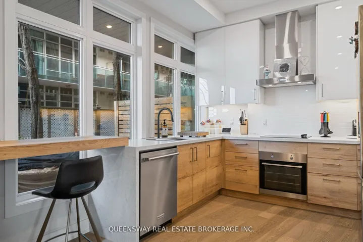 +"PublicRemarks": "Wake up to the calming rhythm of the water and start your mornings with coffee overlooking the shoreline in this beautifully renovated 3-bedroom townhouse in Humber Bay Shores. With direct street access and sun-filled interiors, this home offers a seamless blend of comfort and elevated living. The open-concept main level is designed for both quiet mornings and effortless entertaining, featuring a contemporary designer aesthetic and high-end finishes throughout.The gourmet eat-in kitchen is the heart of the home, complete with built-in stainless steel appliances, quartz countertops, and a walk-out to your private terrace with a gas BBQ line-perfect for hosting or unwinding after a long day. Upstairs, the primary retreat feels like a private escape, offering a den or sitting area, a spa-inspired ensuite, and its own terrace to enjoy peaceful views and fresh lake air.Set in a true lifestyle community, you're just steps to waterfront trails, cafes, restaurants, and everyday essentials-all within walking distance. The lower level provides ample storage and direct access to tandem parking, including a RARE EV charger hookup, with an option for an additional parking space! This is more than a home-it's a daily escape by the water."