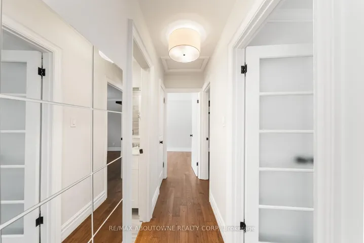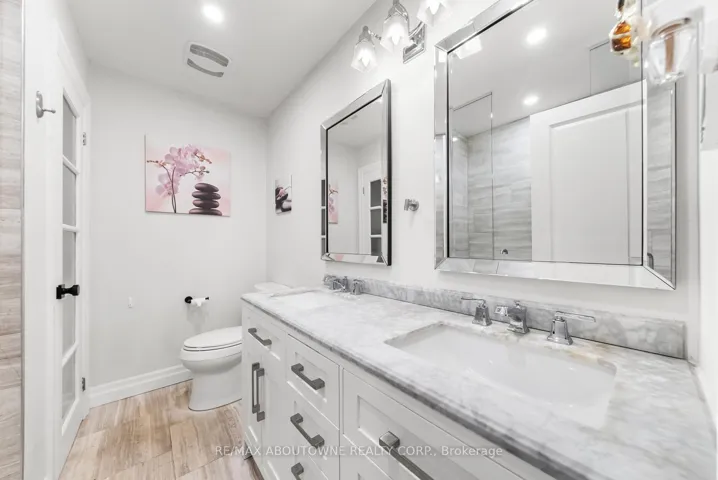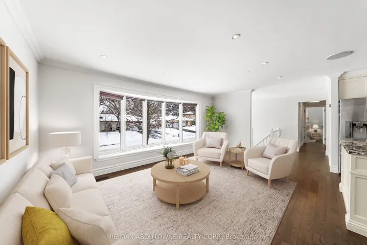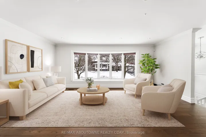 +"PublicRemarks": "Located on a quiet, tree-lined crescent in highly sought-after South East Oakville, this beautifully renovated 3+1 bedroom raised bungalow offers bright, open-concept living . The main floor features a spacious living and dining area, a gourmet kitchen with stainless steel appliances and a large centre island, hardwood floors, and oversized windows. Walk out to a private, fully fenced backyard with a deck and in ground pool. The main level offers three well-appointed bedrooms and a stylishly updated full bathroom. The finished lower level includes a large family/rec room with fireplace, an additional bedroom or home office, a renovated full bathroom, inside access from the garage, plus laundry and ample storage. Located in an excellent school catchment, with Maple Grove, E.J. James, and St. Vincent elementary schools and Oakville Trafalgar High School all nearby and within walking distance, plus close to parks, shopping, and transit. Some photos are virtually staged."