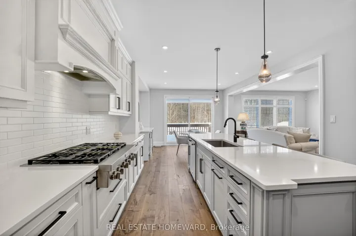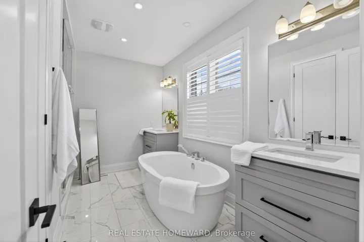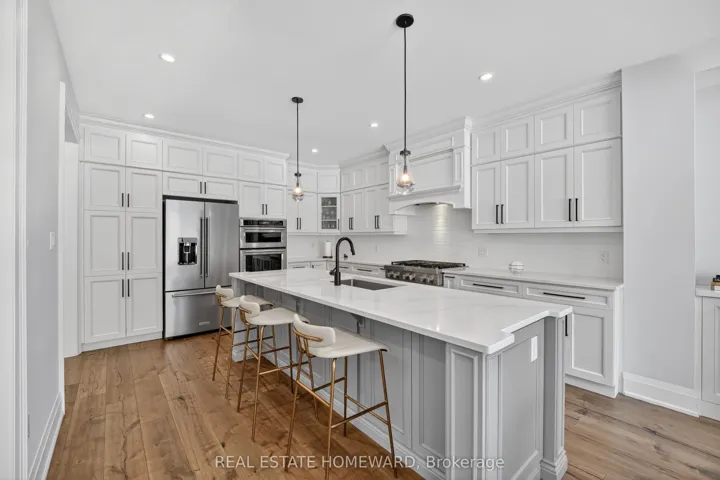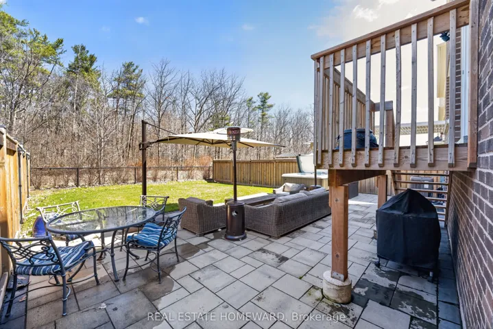 +"PublicRemarks": "Absolutely stunning home situated on one of the largest premium lots backing onto green space, offering exceptional privacy. Beautifully upgraded throughout with high-end finishes, high ceilings, pot lights, and 7-inch baseboards. Welcoming foyer with built-in bench. Elegant dining area opens to a bright living room with gas fireplace and California shutters. Custom eat-in kitchen featuring stainless steel appliances, quartz countertops, breakfast bar, double wine fridge, and walkout to BBQ balcony. Spectacular family room with soaring 16-ft ceilings, gas fireplace, and double French doors leading to a second balcony. Four spacious bedrooms on the upper level, including an oversized primary retreat with tray ceiling, walk-in closet with California Closets, and spau-inspired ensuite with his and her vanities, soaker tub, and glass shower. Finished basement with high ceilings, multiple windows, and ample storage, offering a bright and versatile living space. Professionally landscaped, fully fenced backyard with interlocking, new 6-person hot tub, and serene treed views. Walking distance to trails, parks, and more. Move in and enjoy."