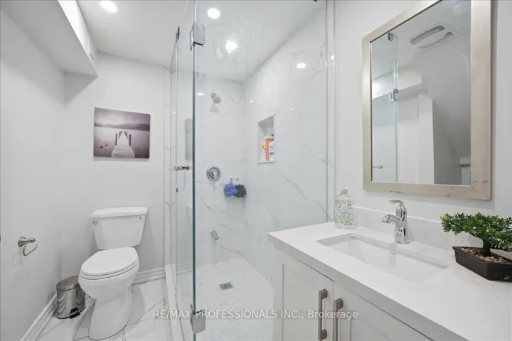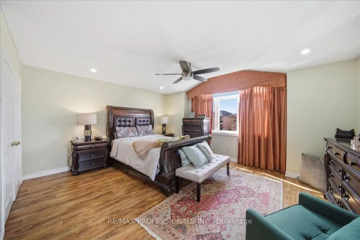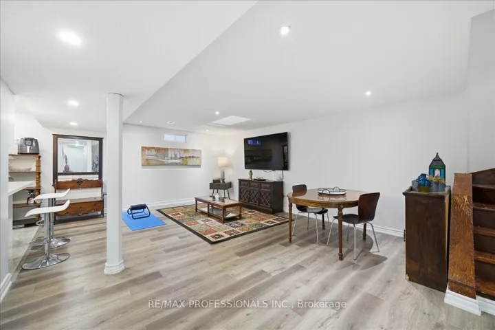 +"PublicRemarks": "Beautifully maintained home in a desirable neighbourhood! Features a large private driveway and convenient garage access into the home. The main floor offers custom tile flooring and a modern updated kitchen with open-concept layout and breakfast area, flowing into a bright living room with hardwood floors. The spacious primary bedroom includes a private balcony and 4-piece ensuite. The finished basement provides additional living space with laminate flooring, pot lights, a wet bar, and office area. Enjoy a large fenced backyard with a generous deck, perfect for relaxing or entertaining. Conveniently located close to schools, shopping, transit, and Hwy 401. Available furnished or unfurnished to suit tenant needs."