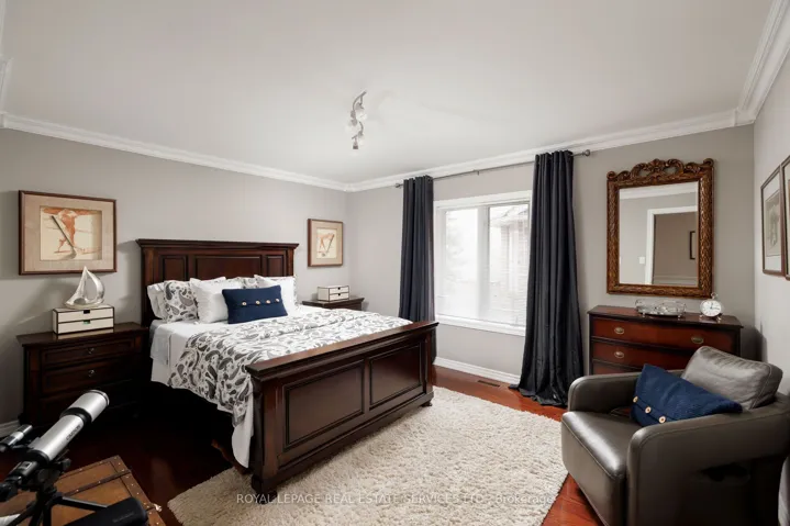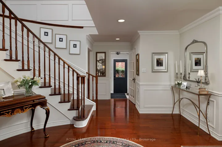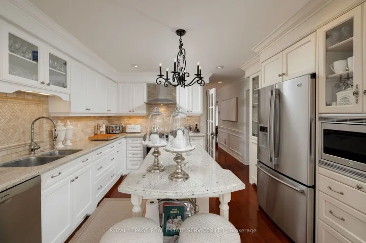 +"PublicRemarks": "Elegance defines this exceptional 4-bedroom, 5-bathroom family home on a quiet crescent in sought-after, family-friendly River Oaks, just minutes to the Uptown Core with its vibrant mix of restaurants, shopping, transit and everyday conveniences. Ideally located near top-rated schools, scenic trails, parks and Sheridan College, with easy access to highways and the Oakville GO Station. Set on a beautiful, professionally landscaped lot, this home showcases lush perennial gardens, meticulously manicured hedging, mature trees, and extensive interlocking stonework front and back. The private, tranquil backyard oasis features extensive patios for dining and lounging, a large gazebo, outstanding plantings with river stone accents, and a vegetable/herb garden bed. Inside, timeless sophistication is evident with smooth ceilings, crown mouldings, wainscotting, fluted columns, French doors, lustrous hardwood floors, designer lighting throughout. The main level features a grand living and enlarged dining area ideal for entertaining, and a spacious family room with a gas fireplace. The updated chef's kitchen offers granite countertops, extensive white cabinetry, stainless steel appliances and a large island, flowing into a bright breakfast room with wall-to-wall windows and two walkouts to the outdoor living space. Upstairs, four generous bedrooms and three full baths include a luxurious primary retreat with a sitting area, a custom walk-in closet and a spa-inspired 5-piece ensuite. The finished lower level is designed for elegant, casual entertaining with a large recreation room, gym/office, a charming wine cellar, oversized dream laundry room, and ample storage. A rare opportunity combining luxury, space and an unbeatable Oakville location. Exceptional!"