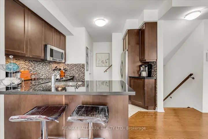 +"PublicRemarks": "Luxury executive 3-bedroom townhome in an exclusive private enclave by award-winning Glen Orchard. Gorgeous forest views, backing onto the scenic Sixteen Mile Creek ravine. Bright, spacious layout with 9' ceilings, crown mouldings, and hardwood flooring throughout. The double-height ceilings with an oversized transom window bring in natural light into the entrance, while the open staircase from the lower level to the second level allows additional natural light from a skylight. The eat-in kitchen features white cabinetry, granite countertops, a built-in pantry wall, and ceramic flooring, along with oversized windows in the breakfast area. The massive family room overlooks forest views, while the dining room-with Butler's access to the kitchen-walks out to a raised deck, perfect for entertaining. The primary suite offers a large walk-in closet and a spa-inspired ensuite with double sinks, whirlpool tub, separate shower, heated floors, and a towel rack. Two additional bedrooms share a full bathroom with a skylight. Step down into the lower level, where you will find a large mudroom with closets and access to the double-car tandem garage, along with a French door leading to the lower-level rec room with walkout access to the backyard. Enjoy additional storage in the unfinished basement with loads of potential. Recent upgrades include engineered hardwood on the third floor (2020), interior painting (2020), all toilets (2020), washer/dryer (2020), hot water tank (2022), garage door (2023), front-side windows (2025), main entry door (2025), water softener (2026), dishwasher (2026), refrigerator (2026), and second bathroom vanity (2026). Prime Oakville location with direct access to Sixteen Mile Creek trails just steps away. Enjoy picturesque views from multiple rooms and sun-filled interiors year-round. Close to top-ranked schools, including Garth Webb Secondary School (AP programs beginning 2026-2027), as well as parks, trails, hospital, and everyday amenities."