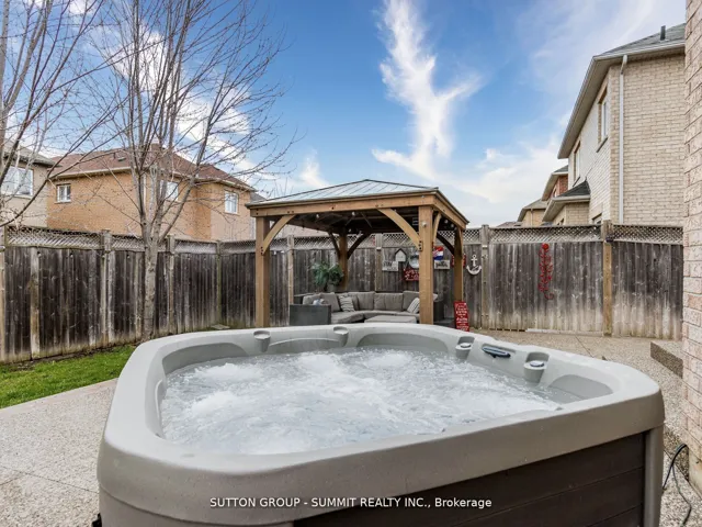 +"PublicRemarks": "Gorgeous and meticulously maintained, this all-brick and stone 2-storey home showcases true pride of ownership. Featuring a grand 2-storey foyer, 4 bedrooms, 4 bathrooms, and a beautifully finished basement (2020) with separate entrance, recreation room, wet bar with quartz countertop, electric fireplace, and heated-floor 3-piece bath. The open-concept main floor offers 9 ft ceilings, crown moulding, pot lights, and hardwood flooring throughout, with updated tile in the kitchen, powder room, and foyer. The upgraded kitchen features quartz countertops with a stunning waterfall peninsula, matching backsplash (2024), and a walk-out to an aggregate concrete patio. The family room with gas fireplace overlooks the breakfast area, while the combined living and dining space is perfect for entertaining. Upstairs features hardwood in the hallway and luxury vinyl plank flooring in all bedrooms, including a spacious primary suite with walk-in closet and 4-piece ensuite. Enjoy the fully fenced backyard with hot tub (2022) and Yardistry cedar gazebo (2022), plus added conveniences like EV charger in the garage, gas BBQ hookup, water filtration system, reverse osmosis, cold cellar, and main floor laundry. Located close to schools, parks, trails, and all amenities."