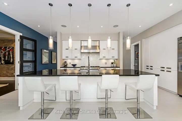 +"PublicRemarks": "Stunning modern elegance in this custom-built home offering over 7,300 sq. ft. of impeccable quality. The designer kitchen features top-of-theline Viking stainless steel appliances, white high-gloss cabinetry, and a 14-ft granite island with S.S. sink and custom faucet, flowing into a bright breakfast area with a massive skylight, multiple windows, and walkout to a covered porch with built-in BBQ and grill. A separate dining room with a light brick accent wall opens to the living/family room with gas fireplace, wall-mounted TV, pot lights, and built-in speakers. The main floor primary retreat offers access to an outdoor hot tub, a spa-like 6-piece ensuite with heated floors, jacuzzi tub, oversized shower, separate water closet, a dedicated dressing room, and convenient main floor laundry. Upstairs, two large bedrooms each feature their own 3-piece ensuites and ample closet storage, plus a barrel-vault family room perfect for kids or guests, with a rough-in for laundry. The lower level includes two additional bedrooms, a washroom, large gym, temperature-controlled wine cellar, recreation room with bar and tasting area, gas fireplace, and a dedicated games room. The epoxy-finished oversized 2-car garage is ideal for car enthusiasts! Complete with a security system (including exterior security cameras), a private fenced yard with mature gardens and in-ground sprinkler system, ample parking, and perfectly located just steps to the lake, close to schools, shopping, and minutes to the GO. Estates like this don't hit the market often in the prestigious Shoreacres neighbourhood!"