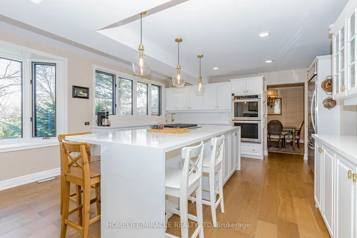 +"PublicRemarks": "Exceptional opportunity in the highly sought-after College Park community! Located in the catchment for top-ranked Ontario secondary schools, including White Oaks Secondary (offering IB program) and Holy Trinity Secondary-both among the top 10 in the province. The home is also within reach of excellent public schools such as Sunningdale Public School, with a recent Fraser Institute rating of 9.2, as well as highly regarded Schools for Full French and French Immersion programs-making it an ideal choice for families. This beautifully maintained, spacious family home shows true pride of ownership and sits on a private lot backing onto peaceful greenspace, with a heated saltwater pool and amazing, unobstructed views from the backyard, kitchen, and family room. The updated kitchen is perfect for everyday living and entertaining, featuring stainless steel appliances, double wall ovens, quartz countertops, two sinks, and an oversized island. Newly installed wide-plank hardwood flooring runs throughout the main and second floors, adding a warm, modern feel. Recent upgrades like a new furnace, air conditioner, and newer dishwasher, washer, and dryer add comfort and peace of mind. Upstairs, you'll find four generously sized bedrooms, including a primary suite with a walk-in closet and 4-piece ensuite. A skylight in the second bedroom brings in plenty of natural light, making the space feel bright and welcoming. The finished basement offers even more living space, with a fifth bedroom, a full bathroom, a large rec room, and plenty of storage. Outside, enjoy interlock in the front and backyard, a newer deck, a BBQ gas line, and a clear, open view of the park and greenspace-perfect for relaxing or hosting friends and family."