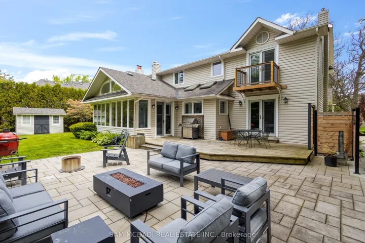 +"PublicRemarks": "Welcome to your dream home in the heart of Clarkson Village, where timeless elegance meets modern living. Perfectly situated on a sprawling 200 x 200 ft lot where you can enjoy the very best of Clarkson Village & Port Credit's local amenities including fine dining, boutique shopping, amazing public & private schools, waterfront parks, the Rattray Marsh, the Go Station & an easy commute to Toronto via the QEW! Inside, you're immediately met by an upgraded interior w/ approx 5,000 SF of living space that radiates warmth & sophistication. The open concept floor plan allows for seamless entertainment w/ loved ones & is anchored by gleaming hardwood floors, pot lights & expansive windows that bathe this home in an abundance of natural light. Step into your gourmet chef's kitchen ft Bosch b/i appliances & ample upper and lower cabinetry space. The double sided gas fireplace sets the perfect ambiance in both your dining & great room, elevated w/ cathedral ceilings & picture windows that overlook the mesmerizing backyard oasis. Ascend upstairs, where you'll find 5 spacious bedrooms thoughtfully designed for large families or multi-generational living, with 1 junior suite ft a 3pc ensuite. The Owners suite is your private sanctuary w/ a walk-in closet for all of your prized possessions, a gas fireplace & a lovely 5pc ensuite perfect for unwinding after a long day. The partially finished basement extends your sq ft w/ a rec room, a laundry room, a guest bedroom or office space & some unfinished space to create a home spa, a movie theatre, a gym, etc - the possibilities are endless! Outside, the backyard is a nature lover's paradise w/ mature trees encircling this home for ultimate privacy! Enjoy alfresco dining on the wooden deck or gather around the stone patio fire pit and enjoy an evening glass of wine. This is more than just a home - it's a private retreat for loved ones to create everlasting memories in."
