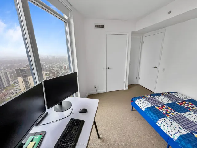 +"PublicRemarks": "Suite 2607 at 5 Valhalla Inn Road offers a rare corner residence with unobstructed southwest views stretching to Lake Ontario. One of the largest 1-bed + den layouts in the building, the suite is thoughtfully designed to balance comfort, scale, and flexibility. Floor-to-ceiling windows wrap the living space, filling the home with natural light throughout the day and enhancing the sense of openness created by nine-foot ceilings and a well-proportioned layout. The contemporary kitchen is sleek and functional, complete with granite countertops and a centre island. Modern flooring runs throughout, contributing to a bright and refined living environment. The versatile den provides an ideal flex space, well-suited as a home office, study area, or multi-purpose use. Residents enjoy access to a full complement of amenities, including a fully equipped fitness centre, indoor swimming pool, party and entertainment room, guest suites, ample visitor parking, and 24-hour security. Ideally located near public transit, shopping, dining, and major highways, this address offers exceptional convenience for commuters and everyday urban living. A well-balanced offering that brings together space, natural light, and expansive views in a connected West End setting."