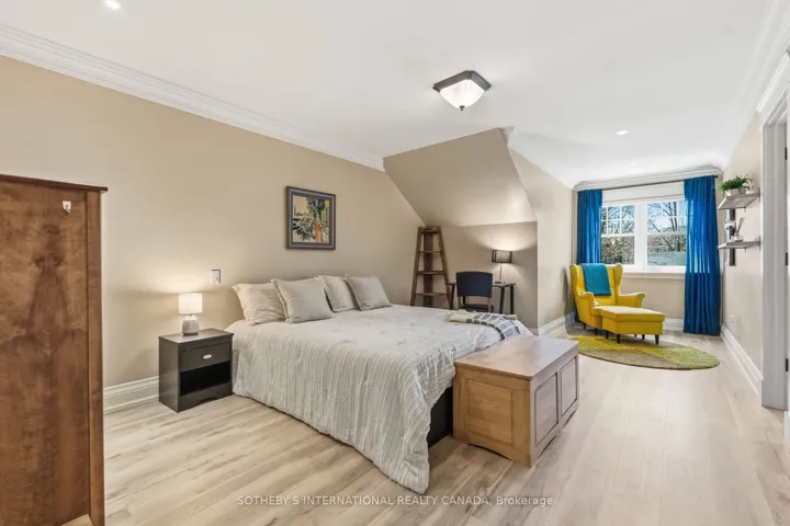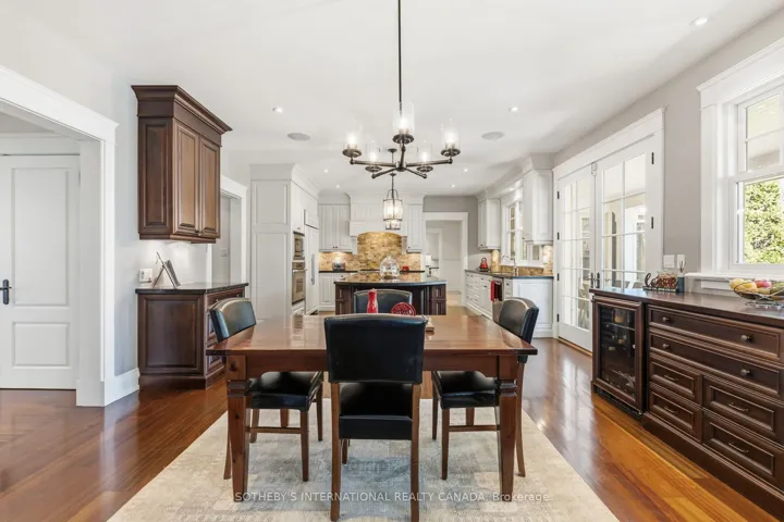 +"PublicRemarks": "Elegant Cape Cod-inspired masterpiece set on a quiet cul-de-sac in prestigious South West Oakville. Ideally situated just steps from Lake Ontario and Appleby College, this residence offers over 6,100 sq. ft. of sophisticated living space featuring 4+1 bedrooms and 6 bathrooms. The grand two-story center-hall entrance is accented by rich Brazilian hardwood floors. The expansive chef's kitchen is complete with a large island, 6-burner Wolf stove-top, a sub zero fridge and sub-zero fridge/freezer drawers in the island. Large double doors, leading to the manicured backyard, flood the kitchen and breakfast nook with natural light. Designed for seamless entertaining, the main level features a formal dining room serviced by a butler's pantry and an inviting living room anchored by a cozy fireplace. Retreat to the serene Muskoka Room, boasting a wood-burning fireplace and tranquil views of the resort-style backyard. The main floor is completed by a side entrance, a functional laundry/craft room and a 2-piece powder room. This level has direct access to the 2 car garage with 2 EV charging stations. The upper level hosts a luxurious primary retreat with dual walk-in closets and a spa-inspired ensuite. Three additional generous bedrooms each feature private ensuites and walk-in closets. You won't want to miss the large bedroom over the garage that makes for the perfect teen retreat. The lower level is an entertainer's dream, offering a large recreation room with a pool table, a full gym, a guest suite, and a cedar-lined wine cellar. State-of-the-art mechanicals include two hot water tanks, 200 amp power for the home and a sump pump. The professionally landscaped grounds feature 14 zone irrigation system, an inground pool and multiple lounging areas, creating an outdoor oasis. The house is wired with a professional Sonos sound system. Ideally located near top-ranked schools and parks, this turnkey home offers an unparalleled lifestyle in Oakville's most coveted pocket."