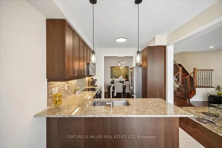 +"PublicRemarks": "Welcome to this executive townhome in Oakville's highly sought-after Bronte Creek community, tucked away on a quiet, family-friendly street and surrounded by scenic trails, parks, and woodlands, all within walking distance to Bronte Provincial Park. This beautifully maintained 2-storey home offers a bright, open concept layout with hardwood flooring and pot lights throughout the main living areas. A formal dining room connects seamlessly to the well-appointed kitchen, which opens to both the dining area and the sun-filled family room, creating an ideal space for everyday living and entertaining. The kitchen features stainless steel appliances, granite counters, breakfast bar, backsplash, and a walk-out to a fully fenced yard with a stone patio. The main floor is complemented by an updated powder room and elegant wood staircase with wrought iron spindles. Upstairs, you'll find 4 spacious bedrooms, including a primary retreat with walk-in closet and a ensuite featuring a glass shower and soaker tub, along with a 4-piece main bath and convenient upper-level laundry. The professionally finished, carpet-free lower level adds valuable living space with a large rec room, gas fireplace, pot lights, additional bedroom, versatile office or gym, and a 3-piece bath. Complete with a single car garage with inside entry, this home is ideally located close to schools, shopping, and major highways."