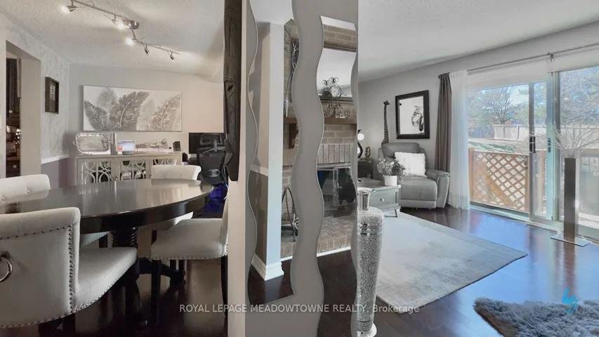 +"PublicRemarks": "Welcome home to one of Meadowvale's most cherished communities - where trails, parks, and neighbourhood warmth meet the convenience of city living. This beautifully maintained 3-bedroom, 3-bathroom condo townhome is the kind of home growing families dream about: tastefully updated throughout with nothing left to do but move in and enjoy. The chef's kitchen features stainless steel appliances, ample counter space, and a dedicated breakfast area - the natural heart of the home. The open-concept main level is anchored by a real, functioning wood-burning fireplace, adding warmth and character you simply can't replicate. Smart switches throughout add a modern touch. The finished basement offers a generous open recreation area - ideal as a family room, playroom, or home office - complete with its own wood-burning fireplace and a direct walk-out to the private carport. Step outside to your semi-private backyard - a well-maintained retreat perfect for summer evenings. The complex features a private pool and is set within an extensive trail network that winds through the neighbourhood and connects directly to Lake Aquitaine. Walk to Meadowvale Town Centre, Meadowvale Community Centre, top-rated schools, and transit - with Hwy 401 and 407 minutes away for effortless commuting. Two assigned parking spaces included. A rare opportunity in a community that truly feels like home."