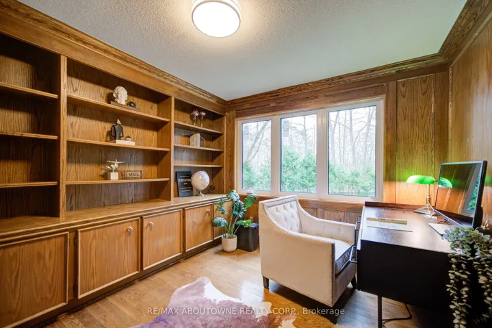 +"PublicRemarks": "Enclaved in the woods, nestled on a ultra-wide pie shaped ravine lot in an exclusive four-home cul-de-sac, this custom Dalzotto-built estate offers approximately 4,000 sf above-grade living space, highlighted by a full-stone exterior, professionally interlocked driveway, landscaped backyard, within walking distance to top-rated schools such as Pilgrim Wood PS &Abbey Park HS. Designed for both entertaining and everyday living, the main floor features a bright foyer leading to formal living and dining rooms, while the impressive family room showcases 17-foot sloped ceilings, five skylights, a dramatic floor-to-ceiling gas fireplace that flows into a sun-filled solarium. The chef's kitchen, renovated in 2016, with custom cabinetry, large center island, premium appliances, including Sub-Zero 36" freezer ,36"fridge set, a Wolf 36" hood w/wall mount blower ,Wolf gas cooktop, a double oven, an Asko dishwasher, a Sharp under-counter microwave. The upper level offers four spacious bedrooms with floor-to-ceiling windows, including a primary suite with a walk-in closet w/ luxurious 5-piece ensuite, two bedrooms connected by a Jack&Jill 5-piece bathroom, a fourth bedroom with its own private 4-piece ensuite. The expansive lower level, with a separate entrance, adds exceptional versatility with a large recreation room, a games room, a fifth bedroom or den with a 4-piece bath, a cold room, ample storage. The private backyard retreat features over 135 feet of ravine frontage a saltwater heated pool with a new liner (21), a 1.5 HP pump (23), an updated sand filter (23), along with additional upgrades such as a new deck ,BBQ (16), backyard fence, two wood sheds (19), back & side triple-pane window replacements (21), owned hot water tank (25). Attic Insulation upgrade (21). An upgraded gas meter supports multiple features simultaneously, including two gas fireplaces, a gas stove, fire pit, BBQ, two furnaces, ensuring this exceptional home delivers luxury , outstanding performance."