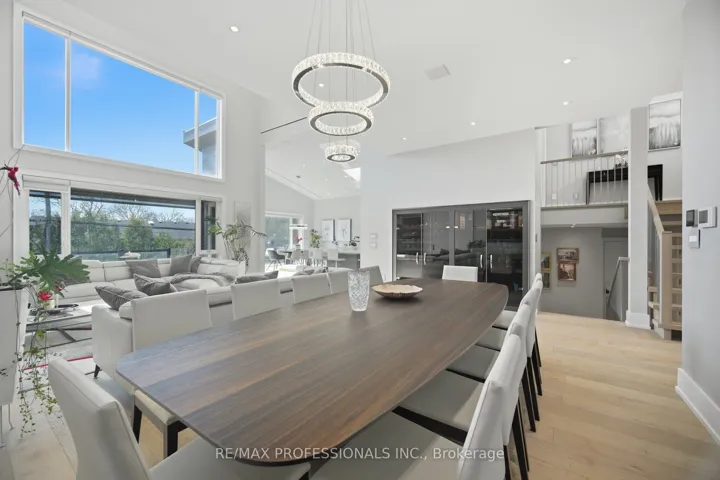 +"PublicRemarks": "Exceptional opportunity to own this sophisticated custom-built residence in the prestigious Princess-Rosethorn community, one of Toronto most coveted neighbourhoods. This architectural masterpiece was designed and built with attention to detail inside and out. Modern house offers over 7,500 sq. Ft. of finished living space across all levels. 5+1bedrooms, 7 washrooms, 7' wide engineered hardwood, all tiled floors heated, all washrooms vanities have natural quartz countertops, 6 contemporary skylights. Spectacular main entrance, foyer with 12 Ft. ceiling, porcelain floor. Private office with custom cabinetry. The main floor delivers an open concept living-dining area. Filled with natural light, oversized windows with motorized blinds, 20/25 Ft. cathedral ceilings, a built-in temperature-controlled wine cellar and a gas fireplace. An Impressive chef's dream kitchen with premium Miele appliances, 72' fridge, gas stove, built-in dishwasher, oven and microwave, 215'x280' island, quartz countertops, 32'x32' porcelain tiles floor, 11/16 Ft. cathedral ceiling, skylight, breakfast area and W/O to patio. Two primary bedrooms on main floor. One with a huge W/I closet, spa-inspired 6pc. washroom and skylight. Second prim bedroom with W/I closet and 3pc. ensuite. Library - as a bonus room on the second floor with custom cabinetry, B/I shelves and skylight. Incredibly finished walk-up basement, above-grade windows, laminate floor, 9,5 Ft. ceiling, huge recreation and sport area, wet bar with quartz countertop, wine fridge, and electric fireplace. Separate nanny suite with W/I closet, 3pc. washroom. Excellent house, tons of storage space, west-facing backyard with lawn sprinkler system, covered patio with motorized pergola and B/I BBQ. Metal roof, security camera system, back up generator, snow melt system, driveway. Close to schools, parks, golf clubs, HWY's and 15 minutes to Pearson Airport."