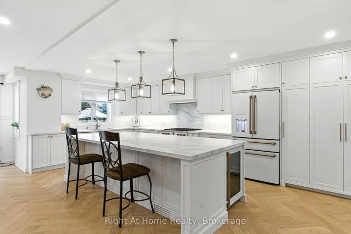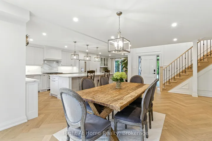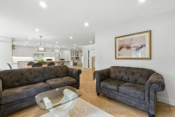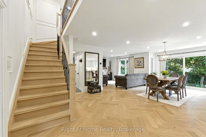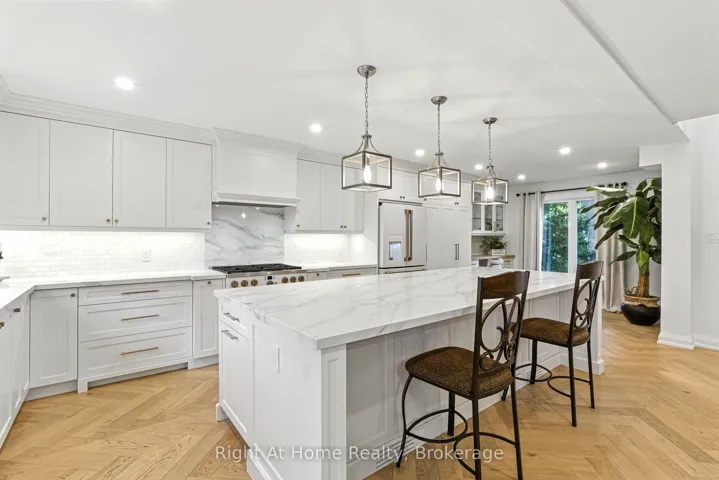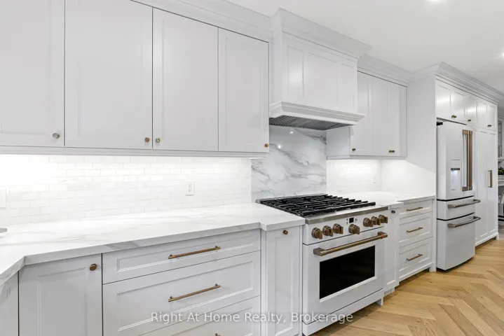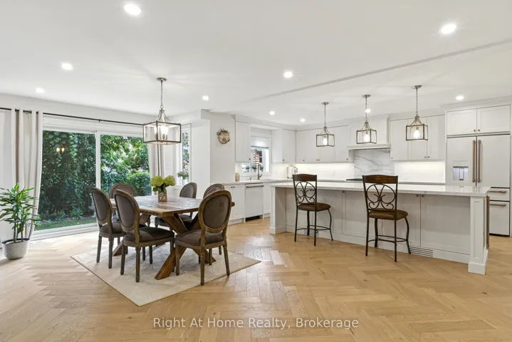 +"PublicRemarks": "Beautiful home in one of the most sought-after communities in Oakville.Premium location on a quiet street in the heart of River Oaks. 3+1 bedrooms+ den/office and 4 bathrooms.Once you step in the house you will see a beautifully designed open concept home with a lot of light from the large second floor windows.Elegant and sophisticated European white oak engineered hardwood floors throughout the entire house even in the basement. Main floor hardwood laid in herringbone pattern.Custom designed kitchen offers a clean,open-concept layout with high-end finishes.The large centre island with quartz countertops making it ideal for entertaining.Full-height backsplash create a modern, elegant look.Top-of-the-line Cafe collection white matte appliances, including a 6 burner gas range and French door refrigerator.A cozy built-in desk area with glass-front cabinets adds versatility.Dining room offers a perfect blend of warmth and sophistication, ideal for entertaining or intimate family meals.The space is bathed in natural light from expansive sliding glass doors that open to a lush, private backyard.Family room exudes warmth and sophistication, making it the perfect space for relaxation and entertaining.The focal point is a striking whitewashed stone fireplace,elegantly framed with a rustic wooden mantel.Well-appointed mudroom offers practical storage with custom built-in cabinetry,a wood bench & convenient drawers for organization.Custom white oak staircase with elegant moulding wall leads you to the second floor where you'll find 3 generously sized bedrooms, each with B/I closets.The spacious primary bedroom is a true retreat , complete with luxurious 5 piece ensuite bathroom with infloor heating. 7.5" Eng. White Oak Hardwood throughout the second floor. 2nd oak staircase leads you to the basement which flows into additional living spaces: 1 bedroom, 3 pc. bathroom, 1 den/office and spacious open concept area ideal for relaxation."