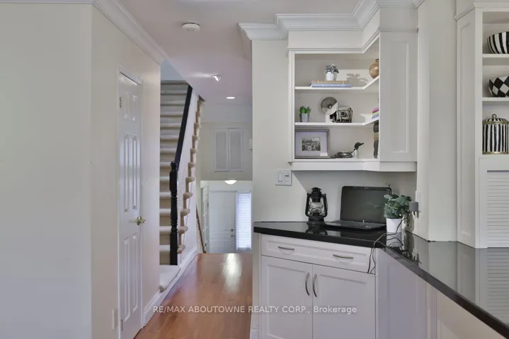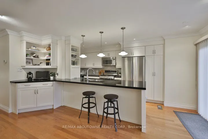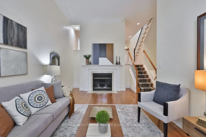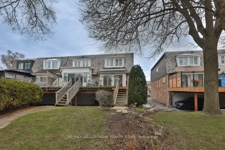 +"PublicRemarks": "PRIME SOUTH OAKVILLE LAKESIDE LIVING. Nestled in an exclusive enclave of townhomes known as The Moorings, this elegant executive freehold end-unit offers refined multi-level living just steps from Lake Ontario. Boasting approximately 1,920 sq. ft. above grade, this beautifully appointed home features two spacious bedrooms, each with its own private ensuite complete with heated floors. The primary retreat impresses with a generous walk-through closet and a luxurious 5-piece ensuite, while the second bedroom offers a walk-in closet and 4-piece ensuite. Laundry located on the second level. The stunning living room showcases soaring 12'7" ceilings, a cozy gas fireplace, and picturesque views of Sixteen Mile Creek and the marina. Designed for both comfort and entertaining, the open-concept kitchen and family room feature a custom designer kitchen with granite countertops, stainless steel appliances, and a walk-out to a private deck. Step outside to your own serene retreat-this private deck backs onto lush greenery, creating a peaceful oasis alive with a variety of birds and local wildlife, offering a truly tranquil setting to relax, unwind, and enjoy nature. Additional highlights include hardwood flooring and crown moulding throughout the main level, a finished basement with a second gas fireplace, charming upper foyer storage, and a rare two-car garage with inside entry. Newer roof and windows. Enjoy an unparalleled lifestyle just moments from Tannery Park, the vibrant downtown core, boutique shopping, fine dining, the Oakville Public Library, and the Oakville Centre for the Performing Arts. Convenient access to the GO Station and major highways ensures effortless commuting. Seasonal lane clearing fee: (Nov-Mar) $229 (2025)."