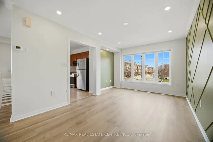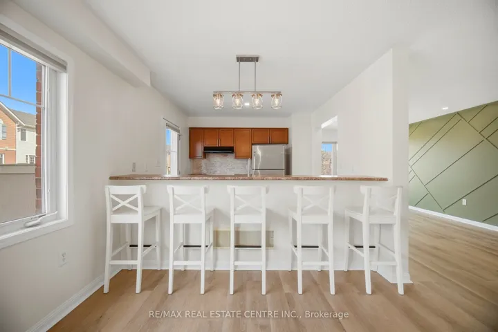 +"PublicRemarks": "Beautiful & spacious CORNER UNIT townhome in the highly sought-after Alton Village, quietly tucked away while still offering convenient access to top-rated schools, shopping, restaurants, parks, and major highways. Backing onto green space and facing the park, this home is surrounded by mature trees, providing a private and naturally secluded setting. Bright northeast exposure fills the home with abundant natural light throughout the day. This carpet-free home features durable vinyl flooring throughout and modern pot lights, creating a warm and inviting atmosphere. The open-concept main level is ideal for both everyday living and entertaining, highlighted by a stylish living room with elegant wall paneling, a spacious dining area, and a well-appointed kitchen complete with stainless steel appliances, ample cabinetry, and a functional layout. Enjoy outdoor living on the wrap-around corner balcony, perfect for morning coffee or evening relaxation, with beautiful views of the surrounding greenery and the Niagara Escarpment. An upgraded oak staircase leads to the upper level, where you'll find two generously sized bedrooms, including a primary retreat with a walk-in closet and 3-piece ensuite, along with a well-maintained 4-piece bathroom for added convenience. The lower level offers a versatile media/den space or extra bdrm, a convenient laundry area, and inside access to a spacious garage with additional storage. This private recently updated corner unit townhome is an exceptional opportunity, featuring low maintenance fees in one of Burlington's most desirable family-friendly communities."